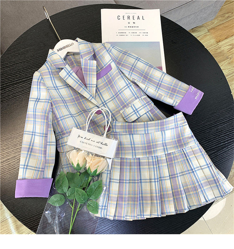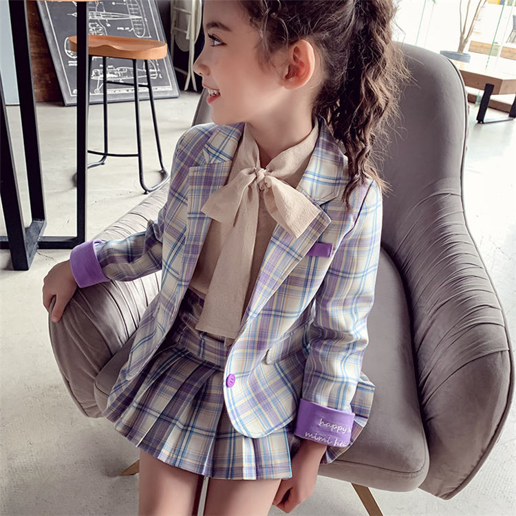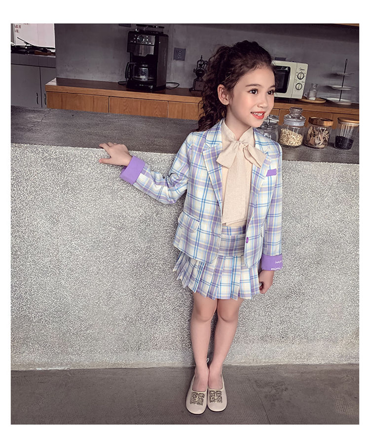 チェック柄 女の子 スーツ 卒業式 入学式 小学生制服 フォーマルスーツ スカート ジャケット 卒服 卒園式 キッズ セットアップ ブラウス 韓国子供服 面接 結婚式 お宮参り 七五三 発表会