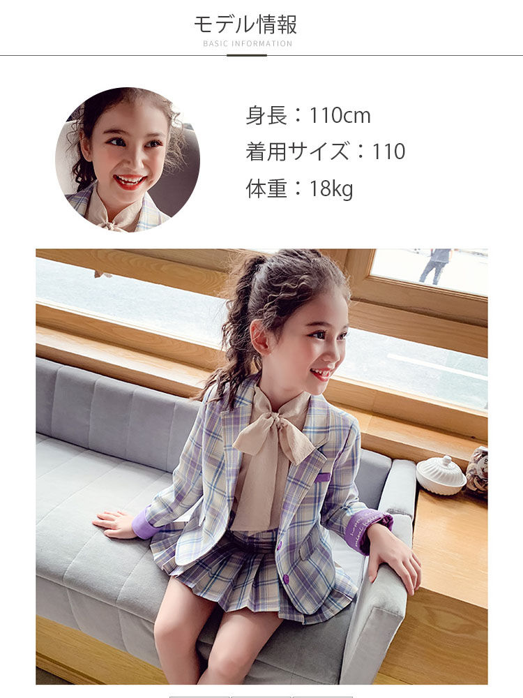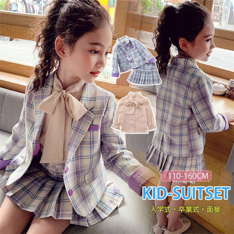 チェック柄 女の子 スーツ 卒業式 入 キッズ ベビー マタニティ 豊富 ジャケット+ブラウス+スカート ジャケット+スカート 100 110 120 130 140 150 160