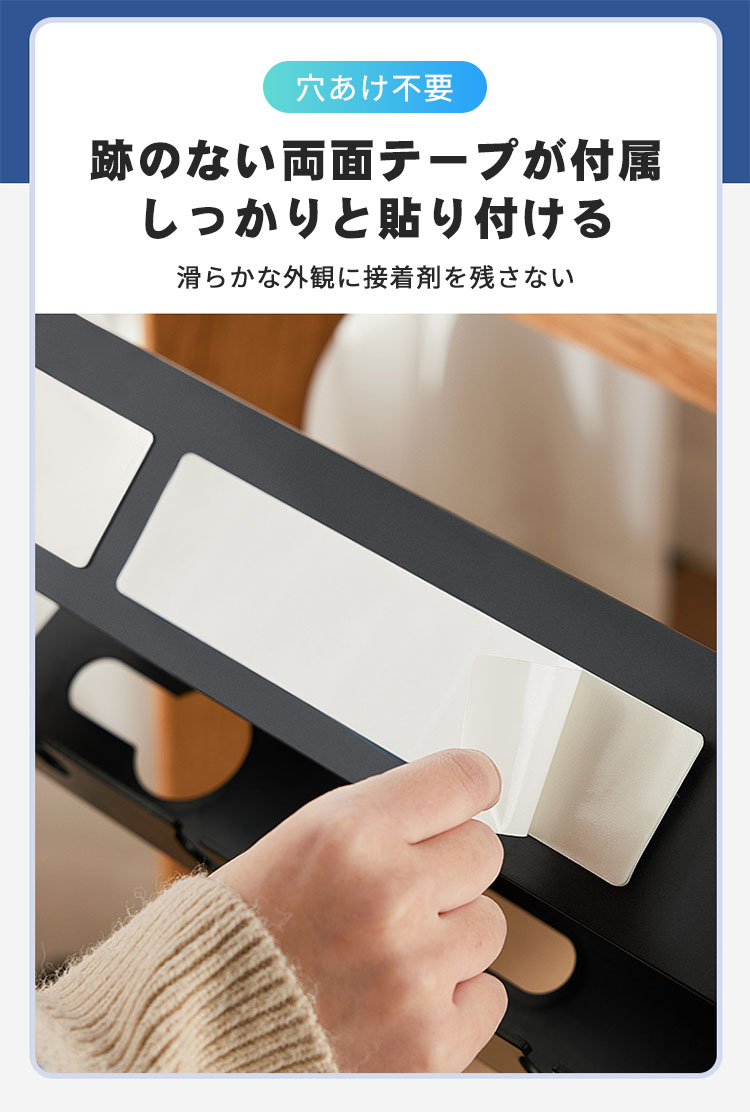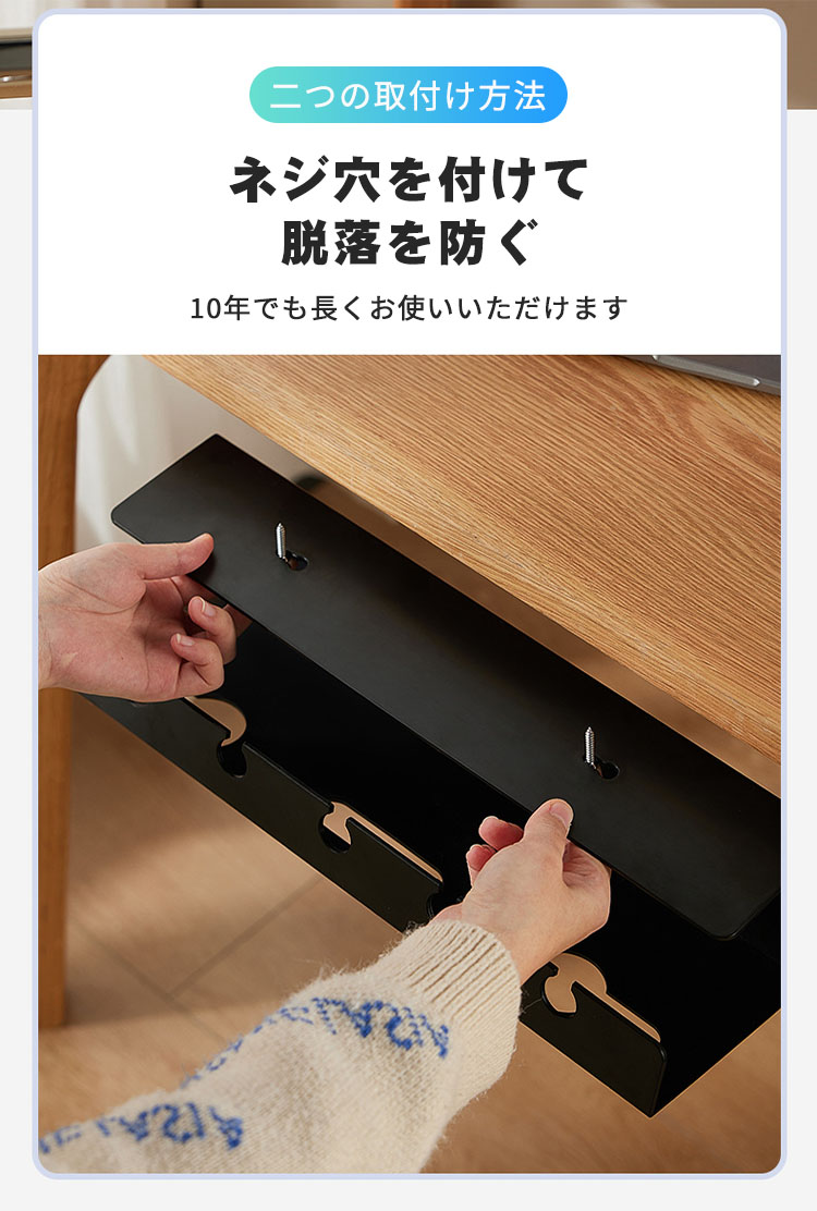 デスク下 配線 整理 穴あけ不要 貼り ホワイト ブラック