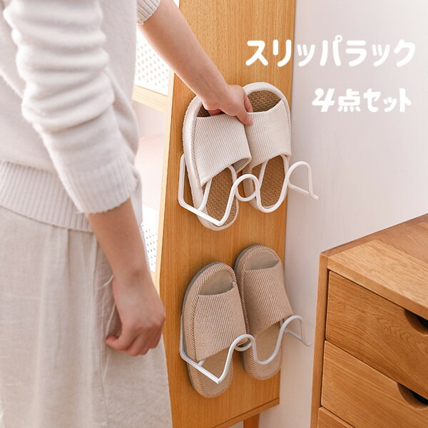 スリッパ 収納ラック ベランダ サンダル 収納 スリッパラック 4点セット お風呂 壁面収納 壁掛け 窓 扉 外履き 浮かせる収納 防水 省スペース シンプル スリッパ置き 玄関 おしゃれ