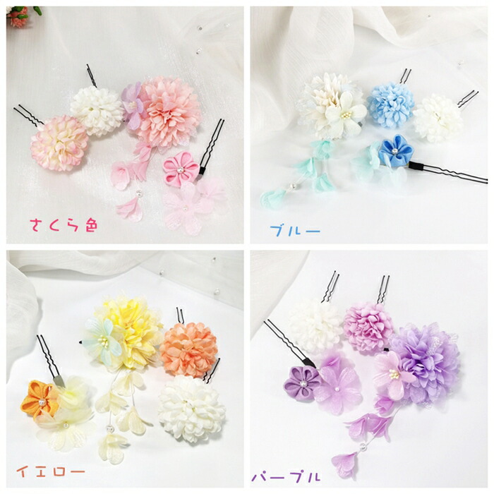 アクセサリー 4点セット ヘアアクセサ さくら色 パープル ブルー イエロー