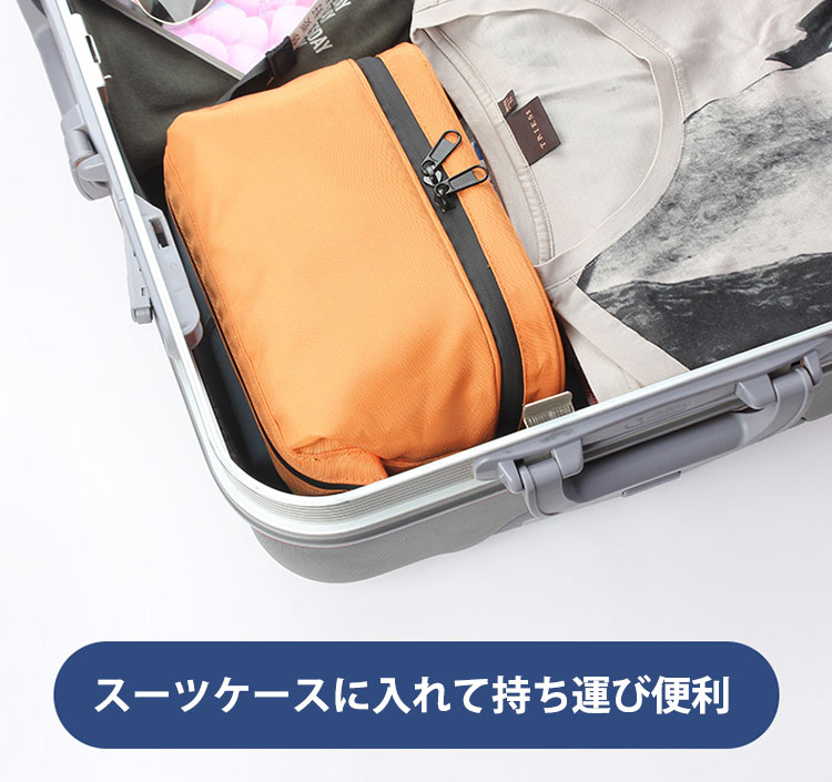 出張や旅行の時にコスメや洗面具など細々したアイテムを一つのポーチにまとめる事ができます。
