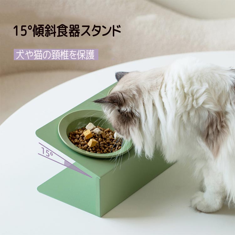 食器 フードボウル 食器スタンド 吐き戻し防止 犬 ペットボウル 猫食器 ダブル 傾斜 食器台 餌台 ねこ給食 ごはん 台 陶器ボウル セラミック製 ごはん皿 滑り止め 小型犬 鉄製スタンド