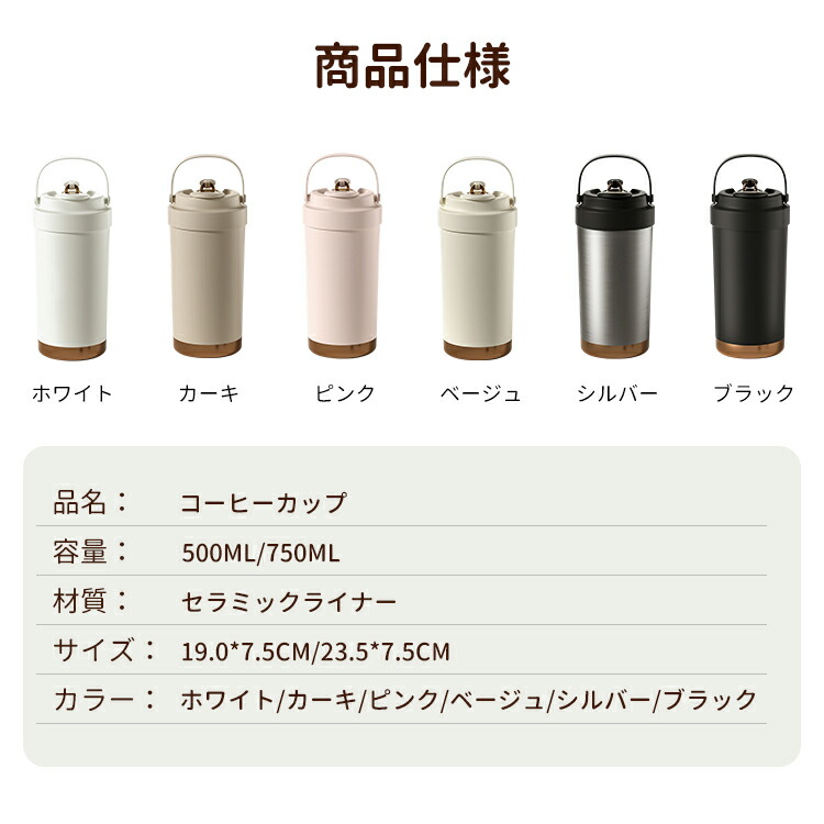 タンブラー セラミックタンブラー 夏用 冬用 750ML 500ML 二重構造 保温携帯コーヒーカップ おしゃれ 溢れにくい 大容量 魔法瓶 保冷 耐熱 蓋付き ブラック 2Way 真空 直接ドリップ