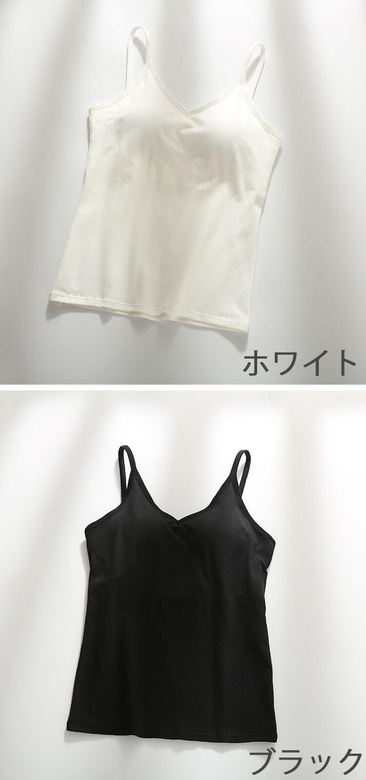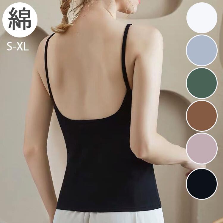 ブラトップ ブラキャミ カップ付き キャミソール 大きいサイズ 綿 コットン 締め付けない インナー 下着 U字 背中開き 春 夏 秋 冬 ブラック ホワイト 白 グレー 黒