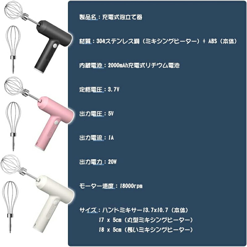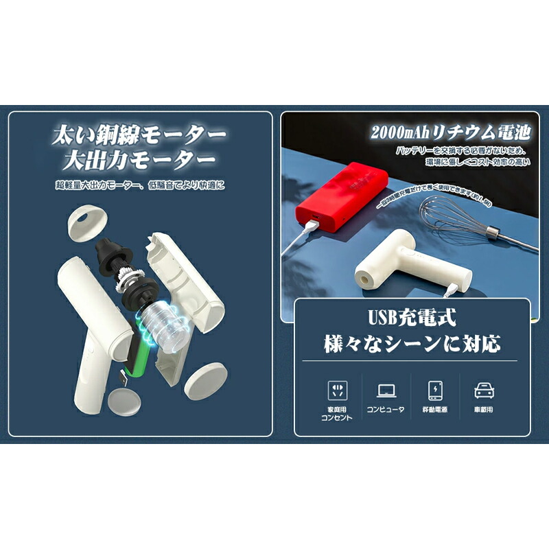 ハンドミキサー コードレス 泡立て器 ハンドブレンダー 小型泡立て器 充電式 USB充電式 軽量 超軽量 小型 電動 強力 電動泡立て器 ミキサー 家庭用 ホイッパー お菓子 ケーキ 離乳 生クリーム