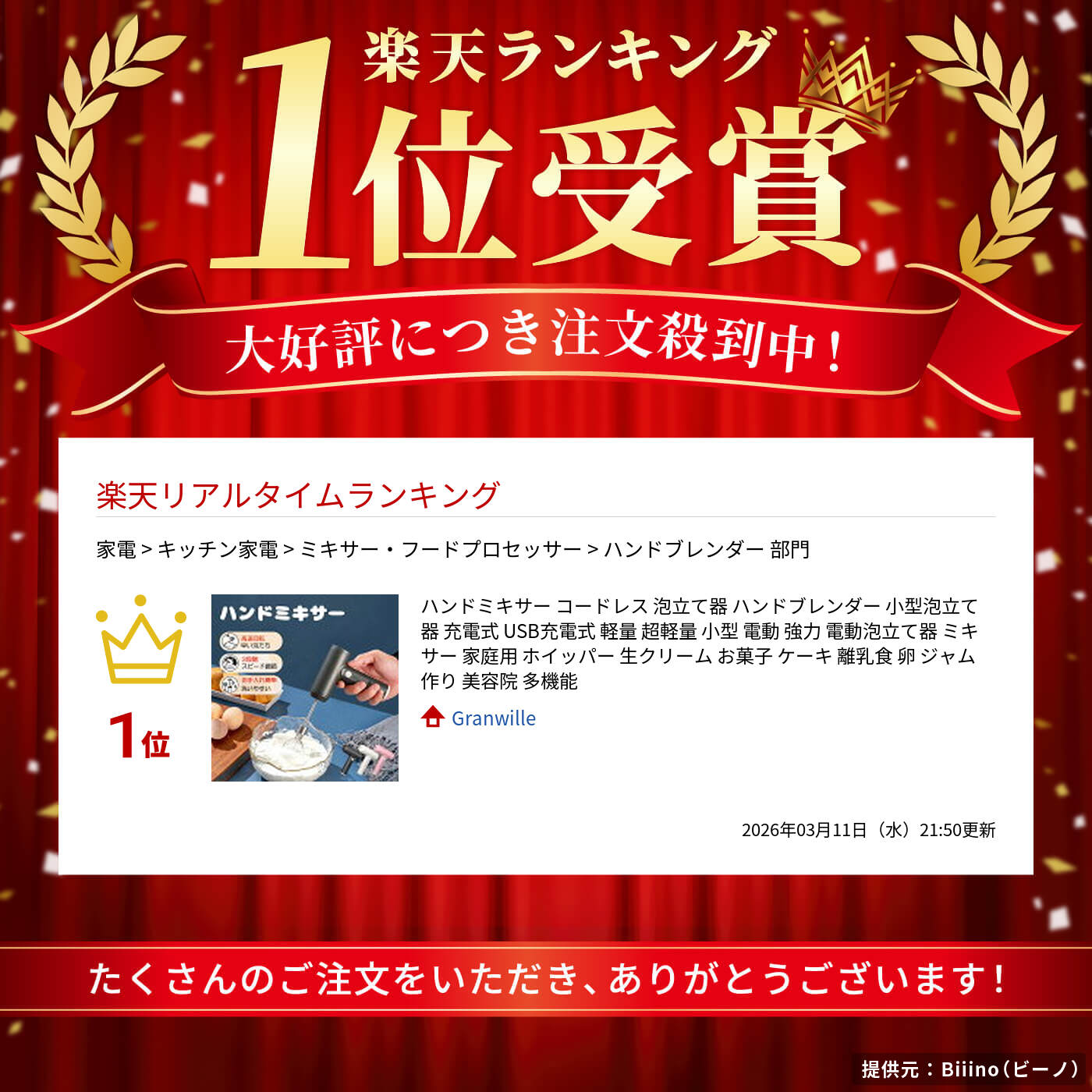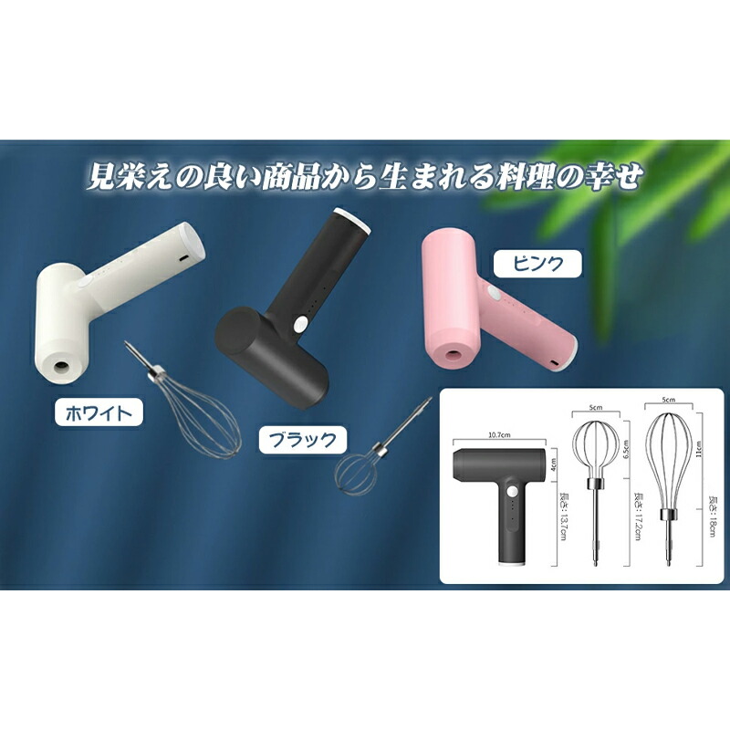 ハンドミキサー コードレス 泡立て器 ブラック ホワイト ピンク