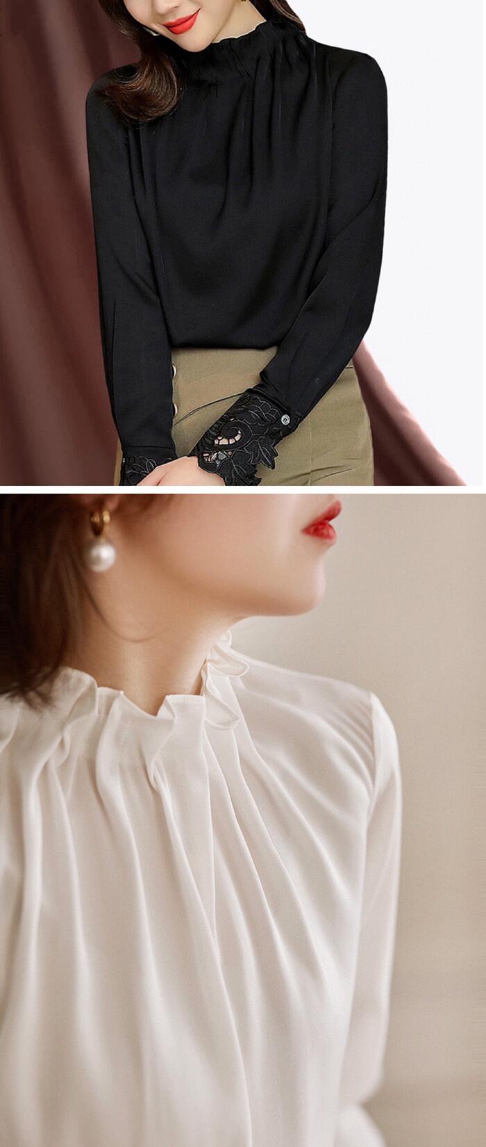 ブラウス フリル襟 レディース シャツ トップス シャツ ブラウス 新登場! ホワイト ブラック S M L XL