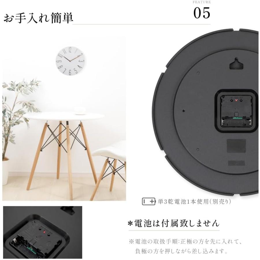 【便利】:掛け時計背面には引っ掛けるための穴が付いています。壁にネジやクギなどを打って、設置してください。また、乾電池だから取り換えも簡単。単三乾電池1本別売り。取り付け用のフックは付属していません。