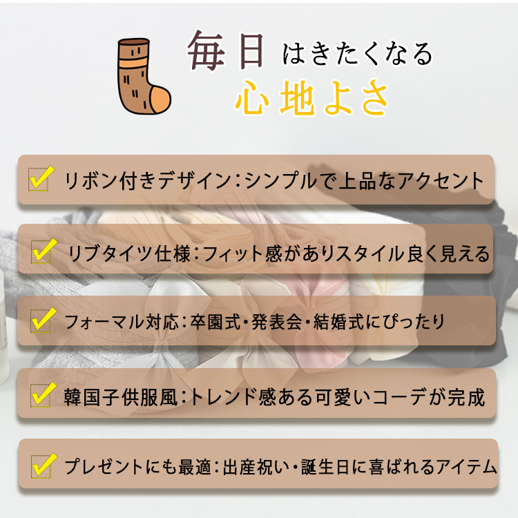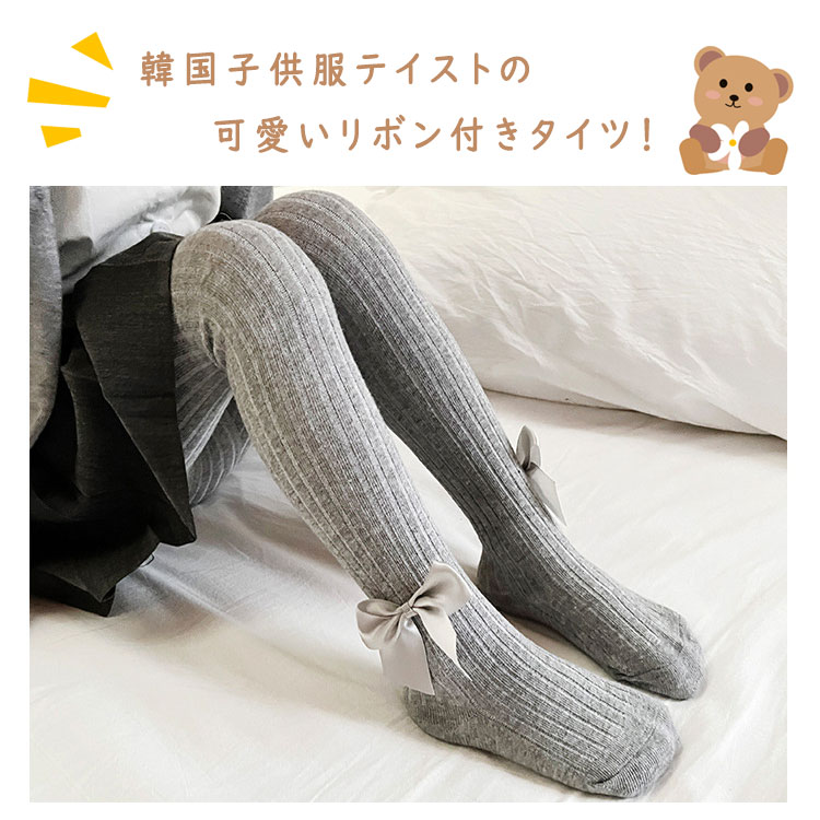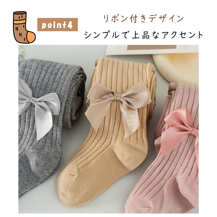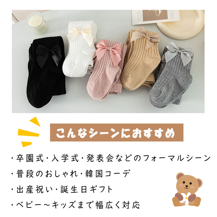 キッズ タイツ リボン付き 卒園式 フォーマル ベビータイツ 女の子 リブタイツ レギンス 韓国子供服 韓国風コーデ シンプル 出産祝い 誕生日 プレゼント 可愛い