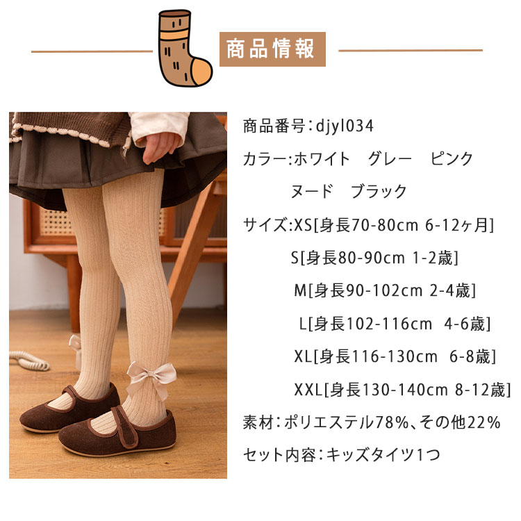 キッズ タイツ リボン付き 卒園式 フ キッズ ベビー マタニティ 新作 ホワイト グレー ピンク ヌード ブラック XS[身長70-80cm 6-12ヶ月] S[身長80-90cm 1-2歳] M[身長90-102cm 2-4歳] L[身長102-116cm 4-6歳] XL[身長116-130cm 6-8歳] XXL[身長130-140cm 8-12歳]