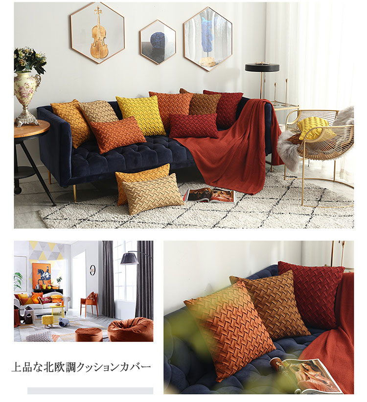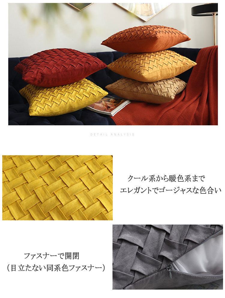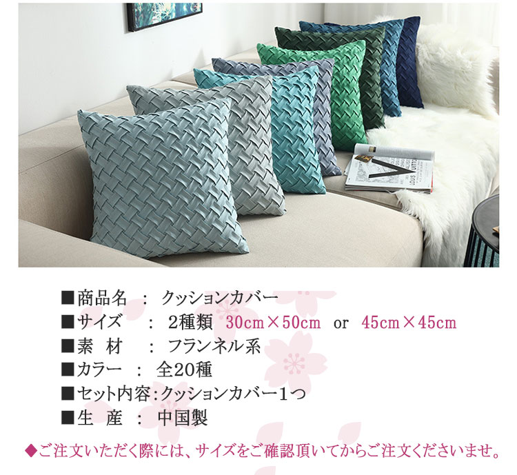 クッションカバー カラー全20色 サイズ2種 フランネル系素材の北欧風テープ織り エレガントでゴージャスな風合い リビングのセンスアップ ソファークッションのカバー