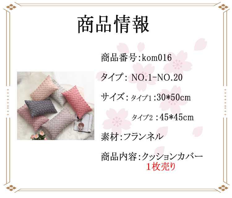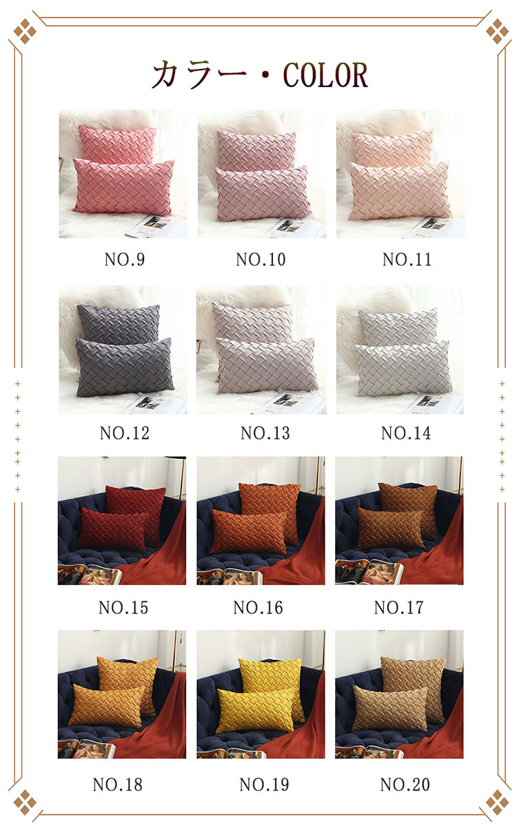 クッションカバー カラー全20色 サイ タイプ1(30*50cm) タイプ2(45*45cm) NO.1 NO.2 NO.3 NO.4 NO.5 NO.6 NO.7 NO.8 NO.9 NO.10 NO.11 NO.12 NO.13 NO.14 NO.15 NO.16 NO.17 NO.18 NO.19 NO.20
