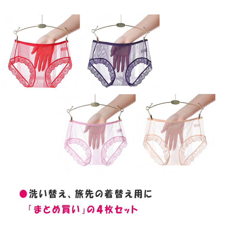 シースルー ショーツ レディース 4枚セット セクシーショーツ 下着 ランジェリー セクシーランジェリー パンティ 透け透け 柔らか素材 優しい穿き心地 通気性 まとめ買 優しい肌ざわり