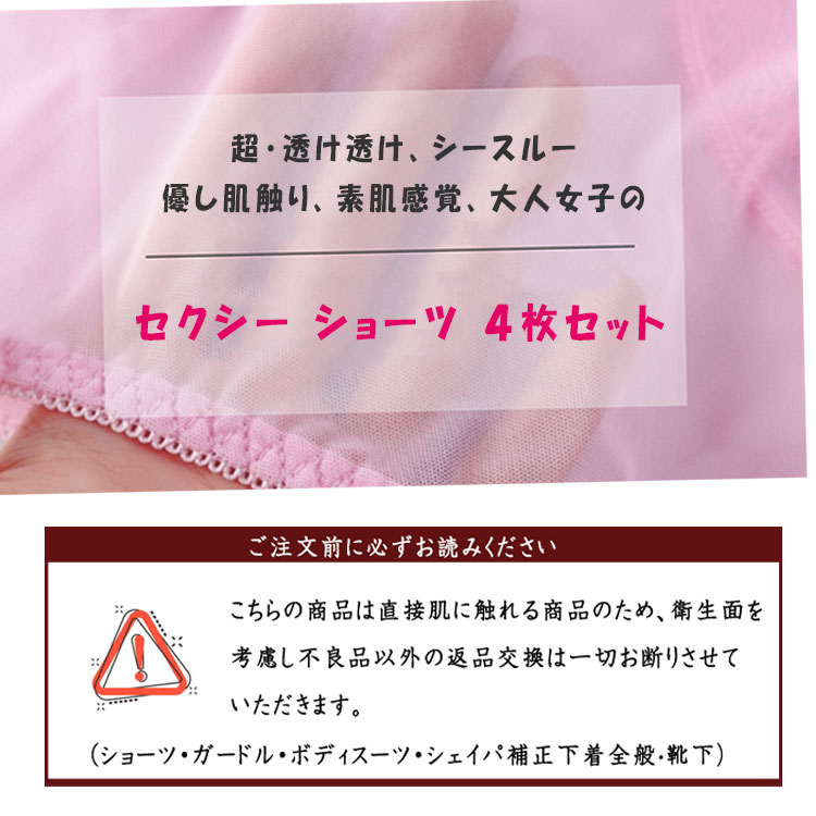 ショーツ シースルー シースルーショーツ 4枚セット セクシーショーツ レディース 下着 ランジェリー セクシーランジェリー パンティ 透け透け 柔らか素材 優しい肌ざわり 優しい穿き心地 通気性 まとめ買い 洗い替え 旅行 里帰り お泊り