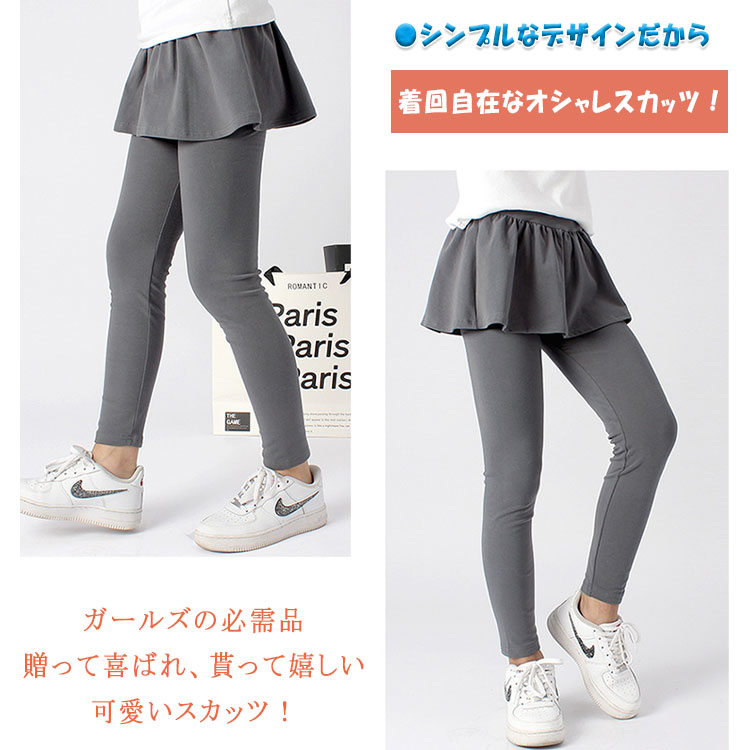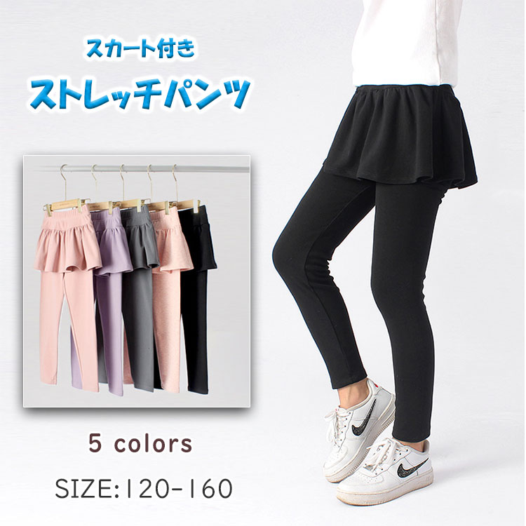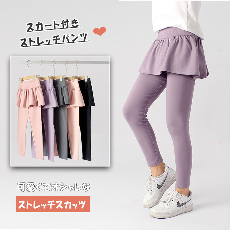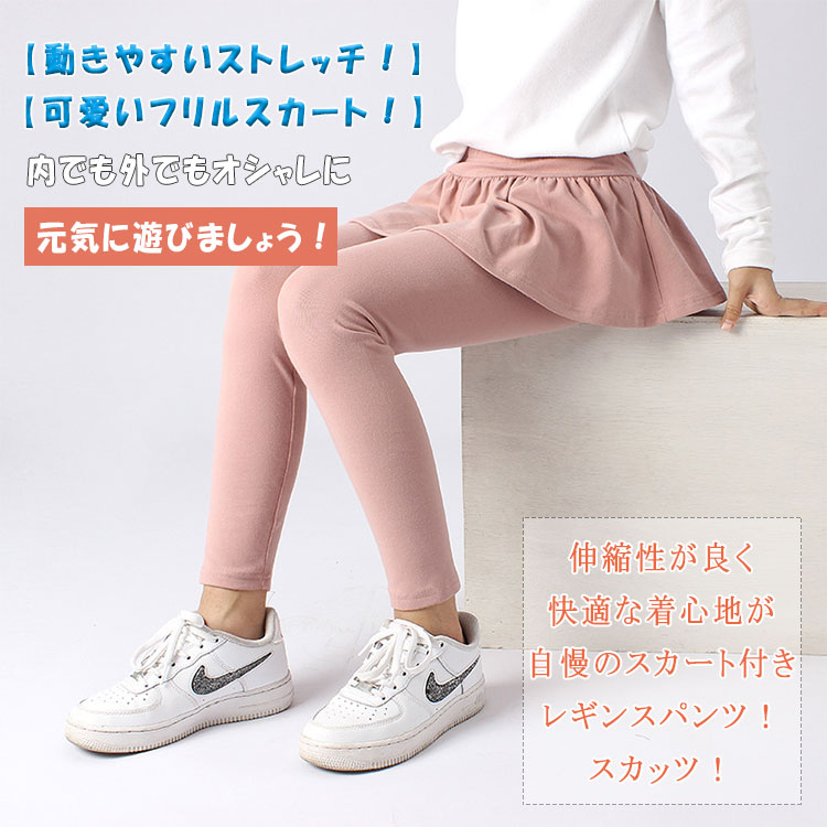 ストレッチ スカッツ 女の子 綿95% キッズ レギンス スカート付きパンツ フリル付き ウエストゴム 春 秋 ストレッチレギンス スカート一体型 120 130 140 150 160 子供服 ガールズ 保育園 通学 可愛い 動きやすい