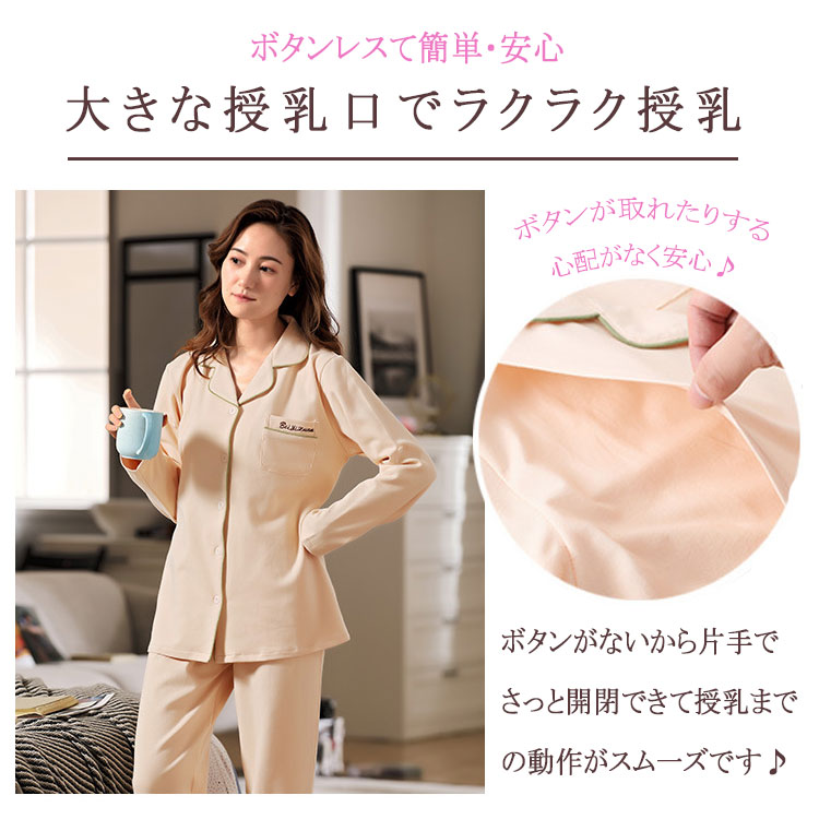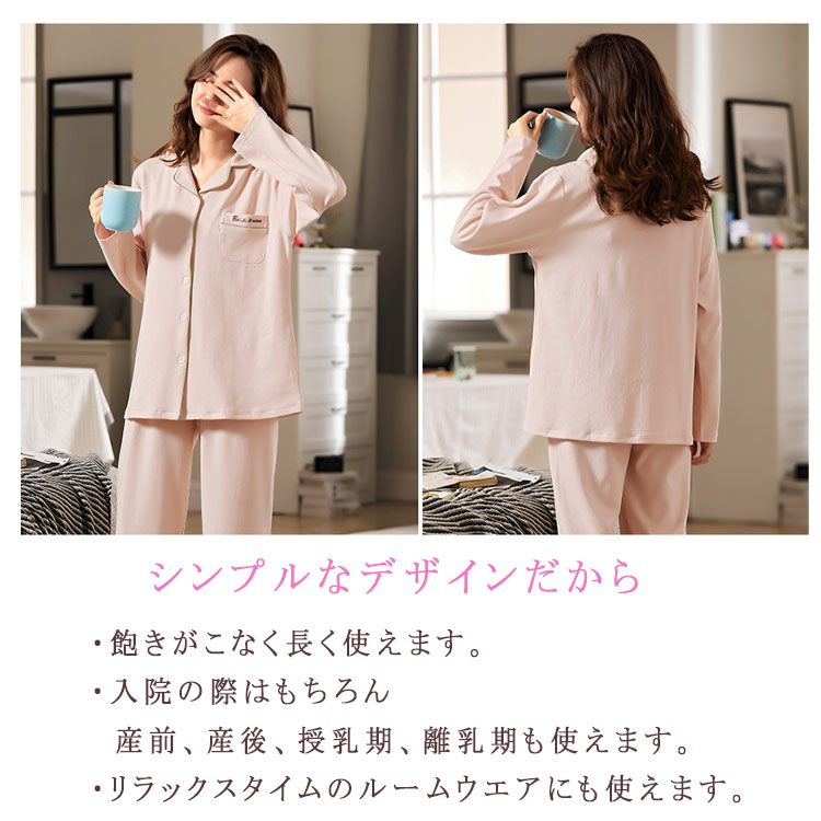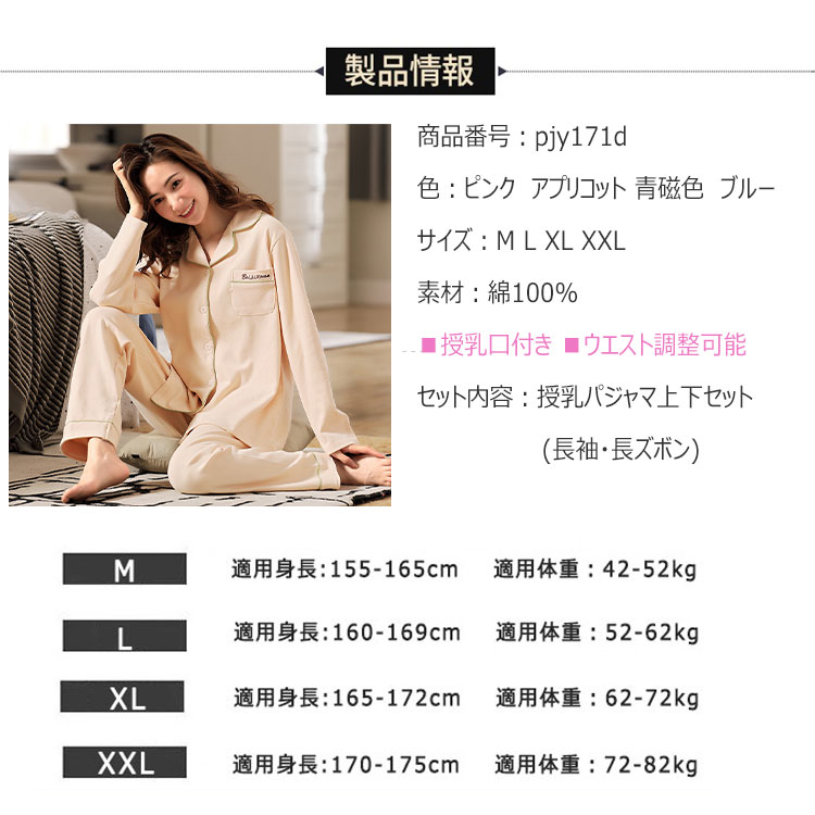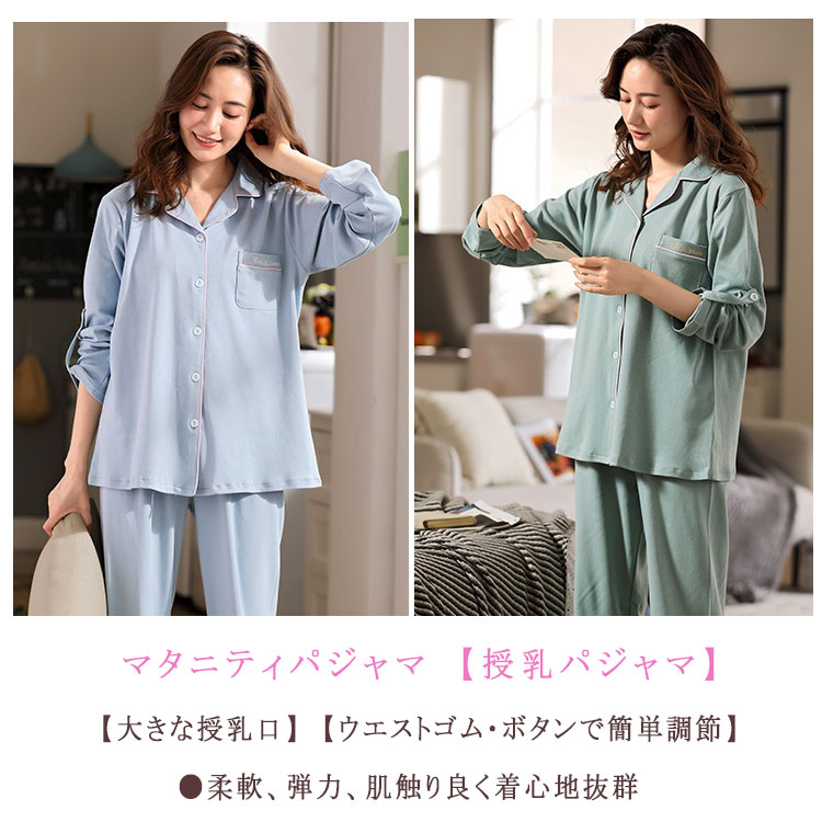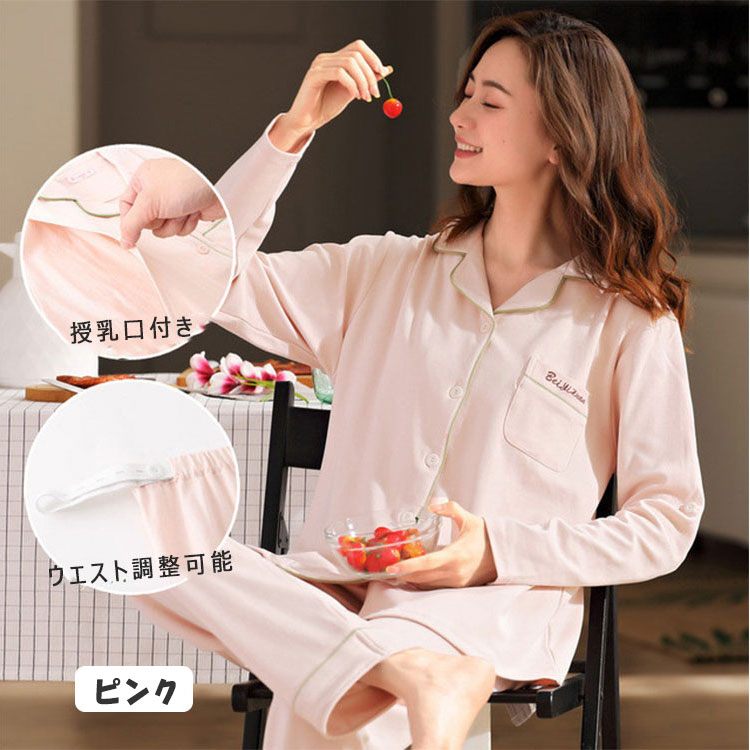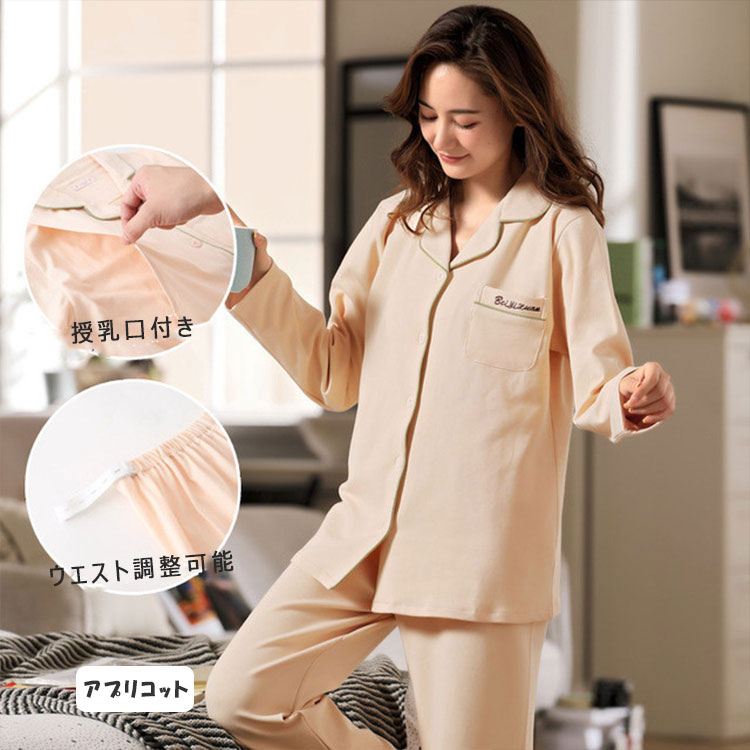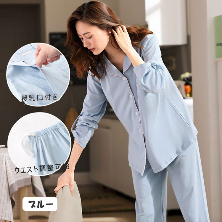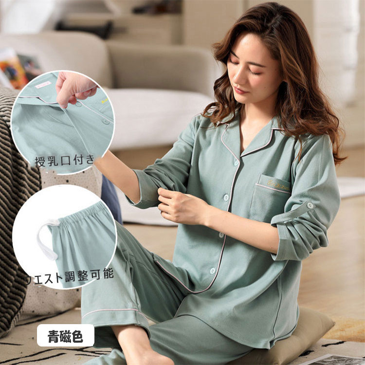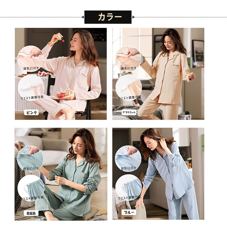 マタニティパジャマ 授乳パジャマ 長袖 マタニティ ママ マタニティウエア 授乳服 授乳服 新登場! ピンク アプリコット 青磁色 ブルー M L XL XXL