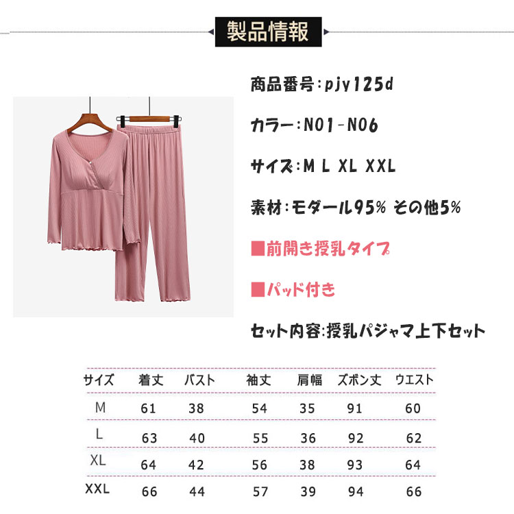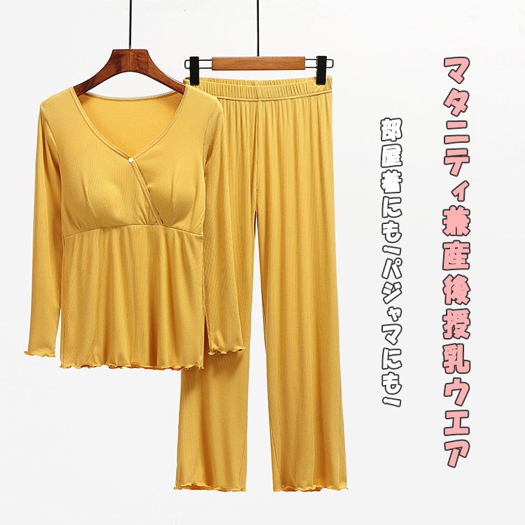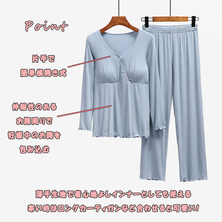 マタニティ パジャマ 授乳パジャマ ルームウェア パッド付き 春 秋 冬 長袖 長ズボン 上下セット 産前産後 ナイトウェア インナー 授乳服 前開きボタン M XL XXL 妊婦 L
