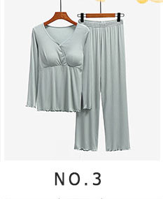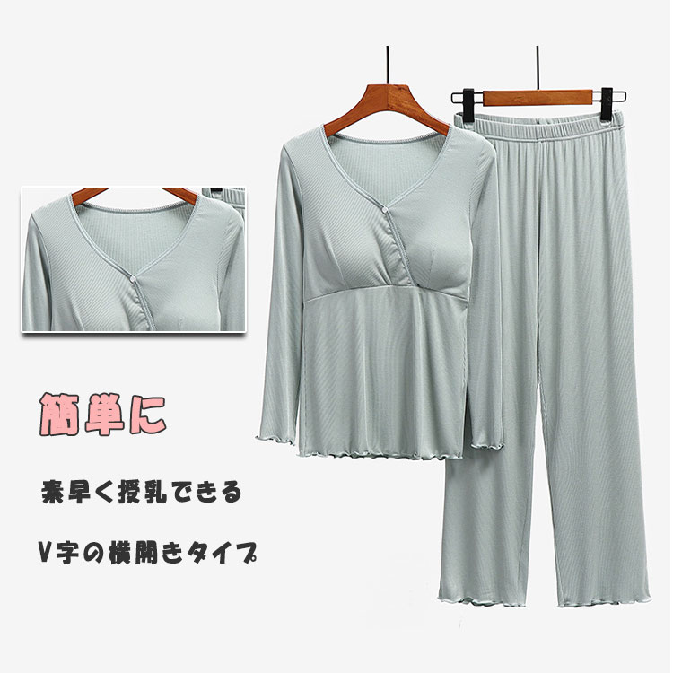授乳インナー クロスオープン マタニティパジャマ 授乳パジャマ パッド付き ルームウェア 上下セット 長袖 長ズボン 春 秋 冬 産前産後 授乳服 妊婦服 前開きボタン M L XL XXL