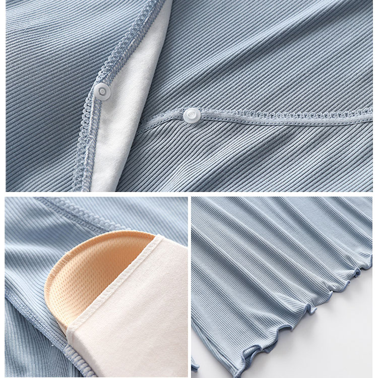 柔らかな伸縮素材とパッド付きインナーで快適フィット。春・秋・冬の3シーズン対応で、入院準備や出産祝いにもおすすめです。