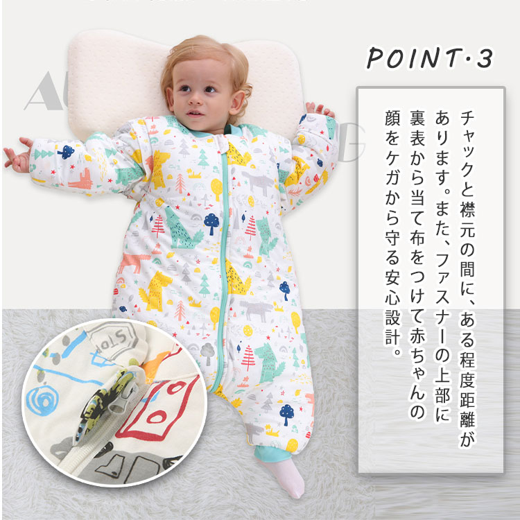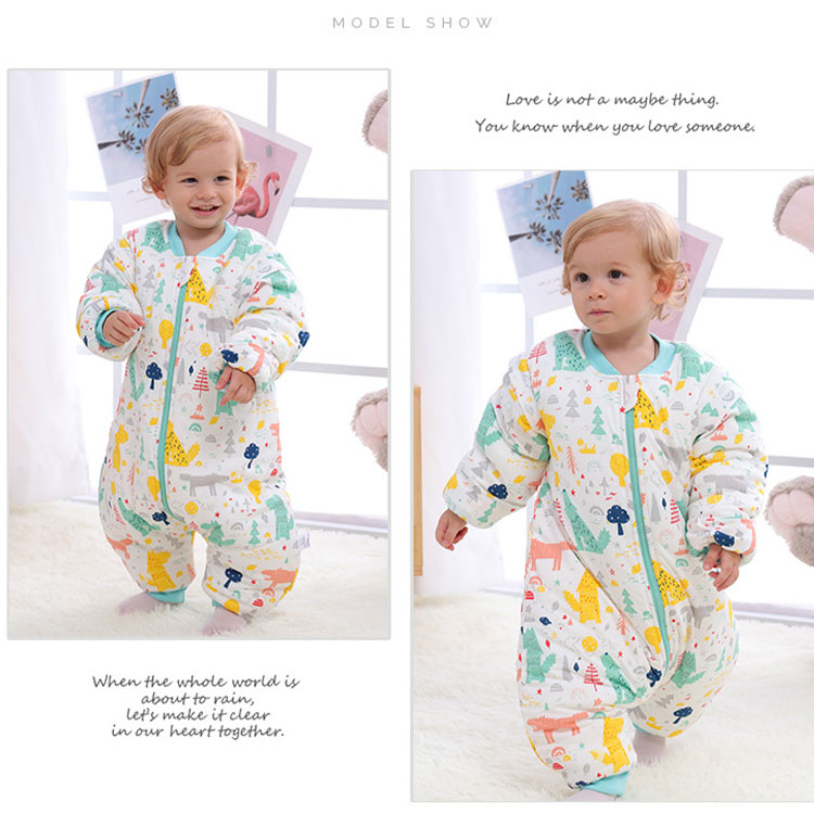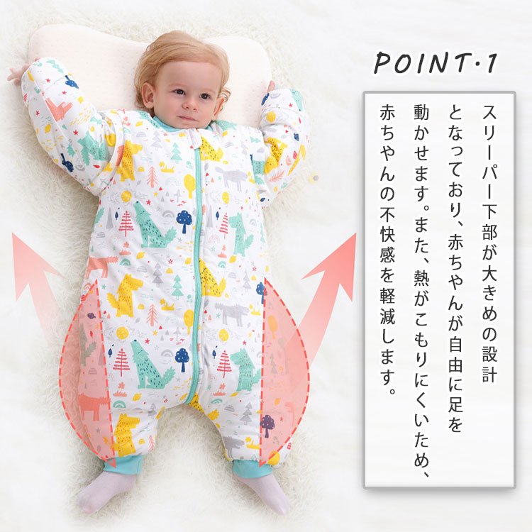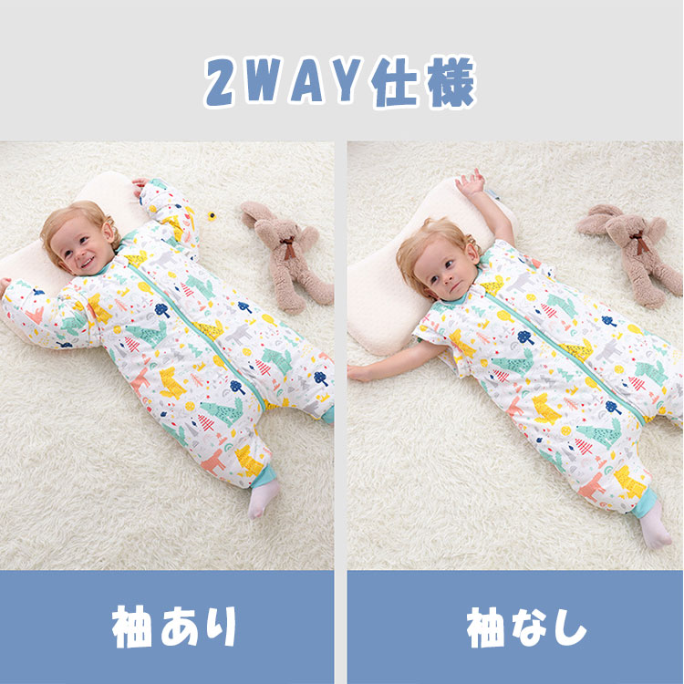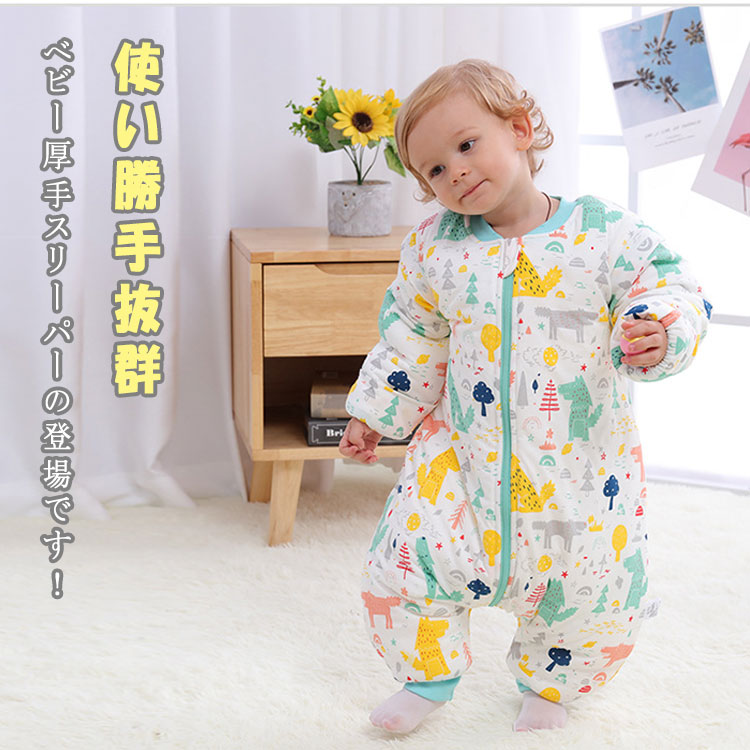 赤ちゃんスリーパー ベビー&キッズ用スリーピングバッグ 0歳~6歳 柔らか厚手 秋冬 防寒 暖か寝袋 オムツ交換 温度調節が便利 足元ゆったり 着脱可能袖上下双方向開閉可能ファスナー