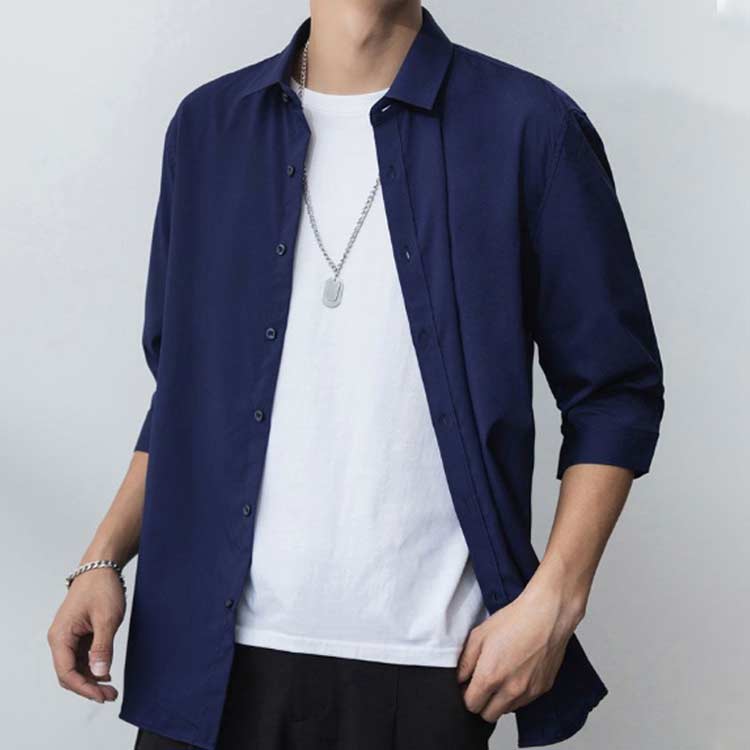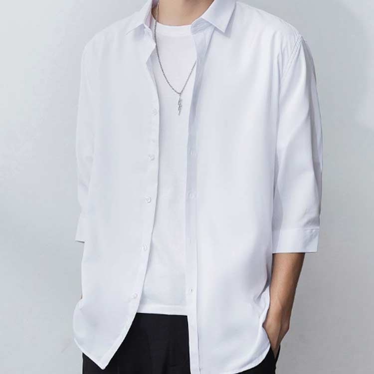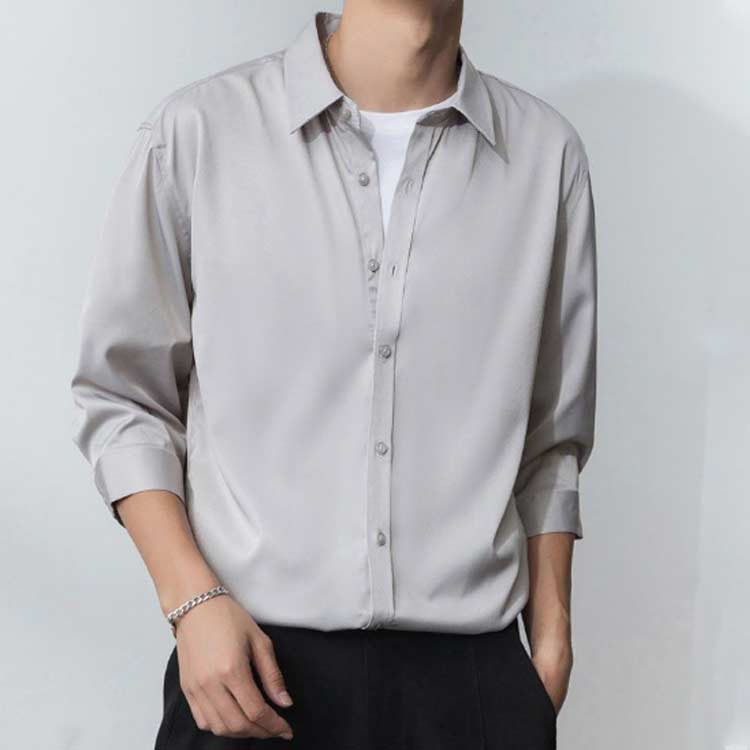 メンズ アイスシルクシャツ 7分袖 七分袖 七分袖シャツ 夏 冷感 秋 カジュアルシャツ 涼しい きれいめ 春 メンズシャツ 夏シャツ 無地シャツ カジュアル M XL 2XL 3XL L