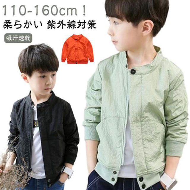 ウインドブレーカー パーカー UVカット ジャンパー 男の子 ジャケット アウター 秋 フードなし 無地 uvカット 柔らかい 薄手 キッズ 夏 子供服 通気性 紫外線対策 トップス 春