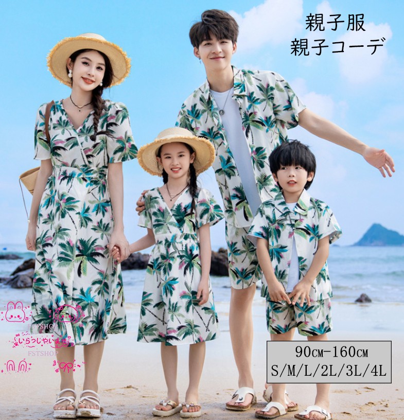ハワイ親子お揃い上下セット親子コーデ親 女の子 レディース 男の子2点セット メンズ2点セット 男の子3点セット メンズ3点セット 90 100 110 120 130 140 150 160 S M L XL 2XL 3XL 4XL