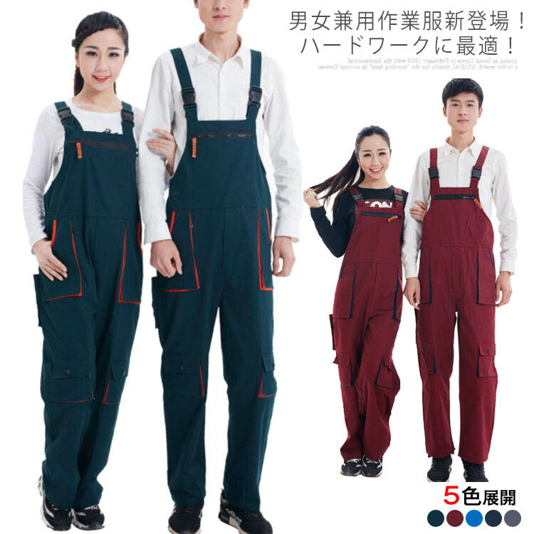 作業服 男女兼用 つなぎ メンズ レデ メンズファッション 新作 S M L XL 2XL 3XL 4XL グレー ネイビー ブルー レッド グリーン