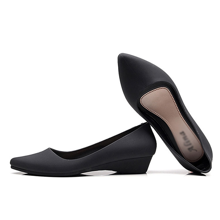 ラバーパンプス レインシューズ 走れる パンプス 防水 痛くない ウエッジソール 歩きやすい ポインテッドトゥ 軽量 雨の日 靴 ママシューズ ローヒール ゴム製 柔らかい 3cmヒール 送 黒