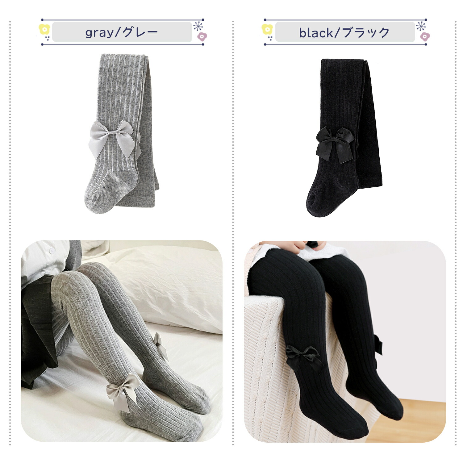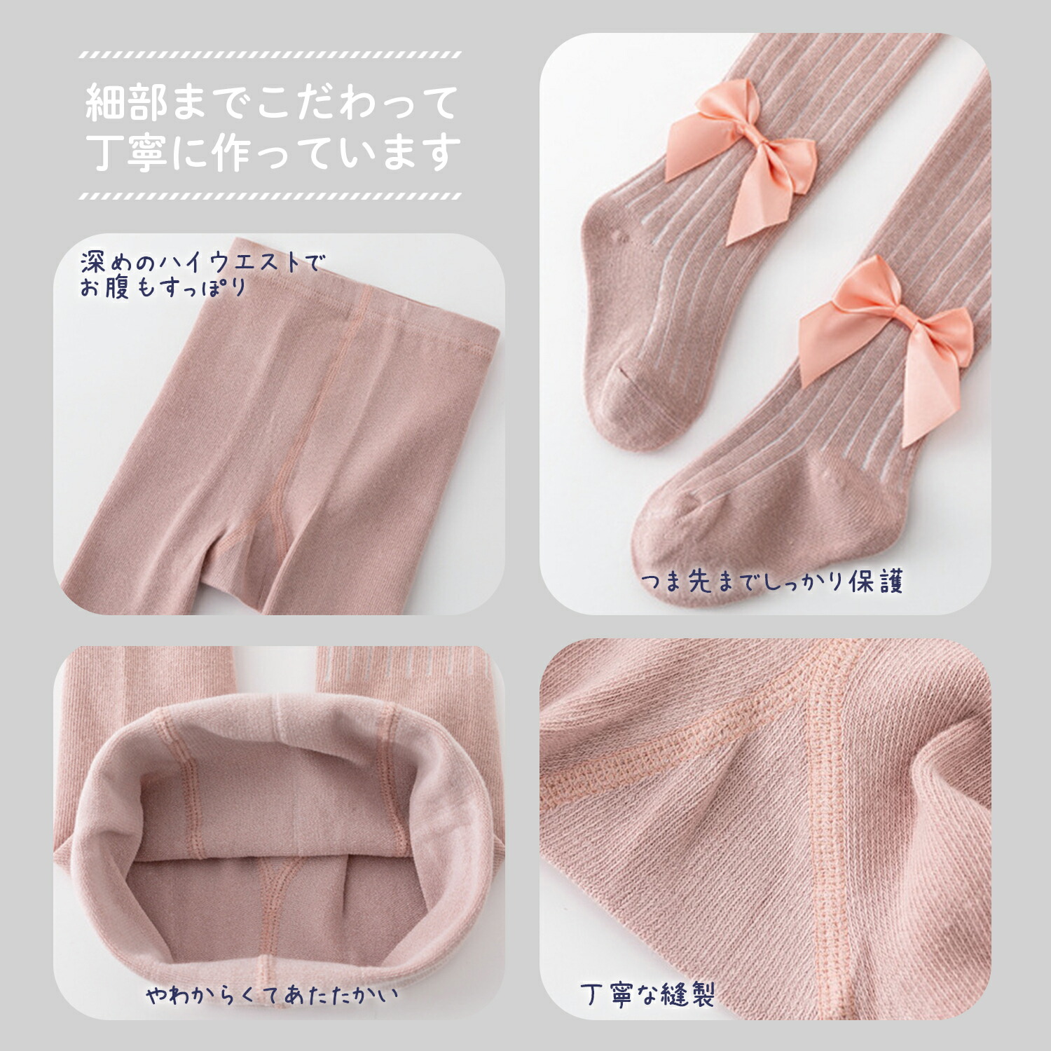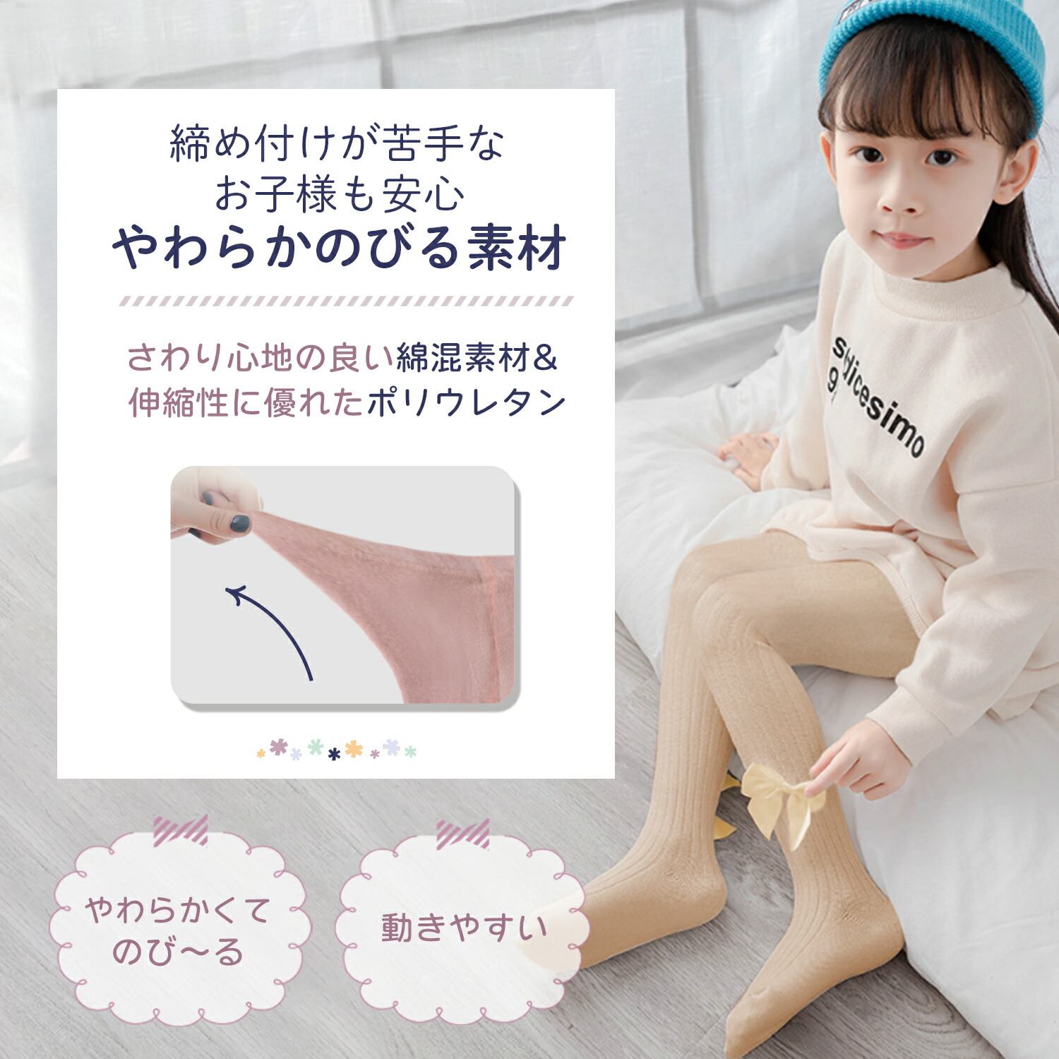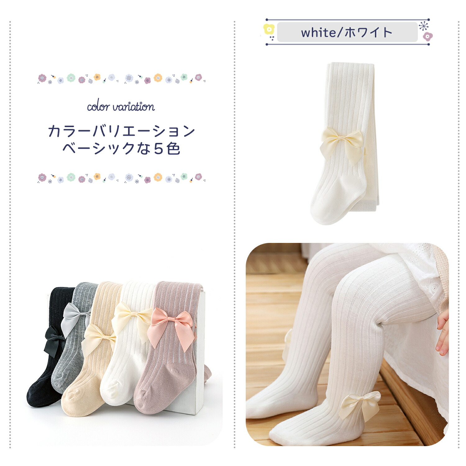 タイツ キッズ 女の子 子ども 子供 ベビー 赤ちゃん ソックス ストッキング 靴下 パンスト サイハイ リボン リブ ホワイト ベージュ ピンク ブラック 白 黒 グレー