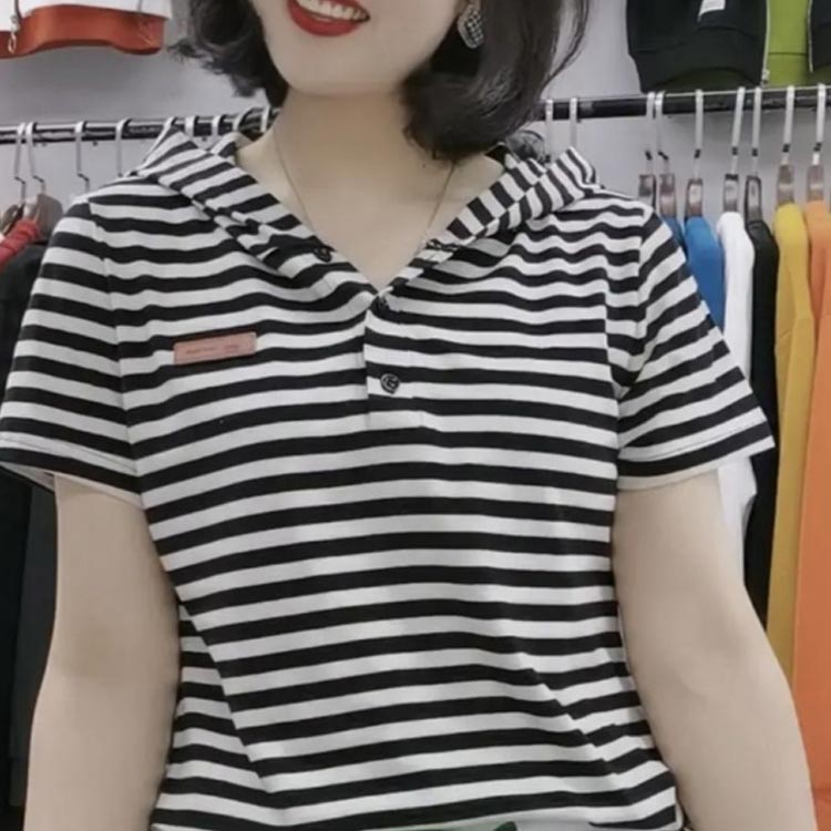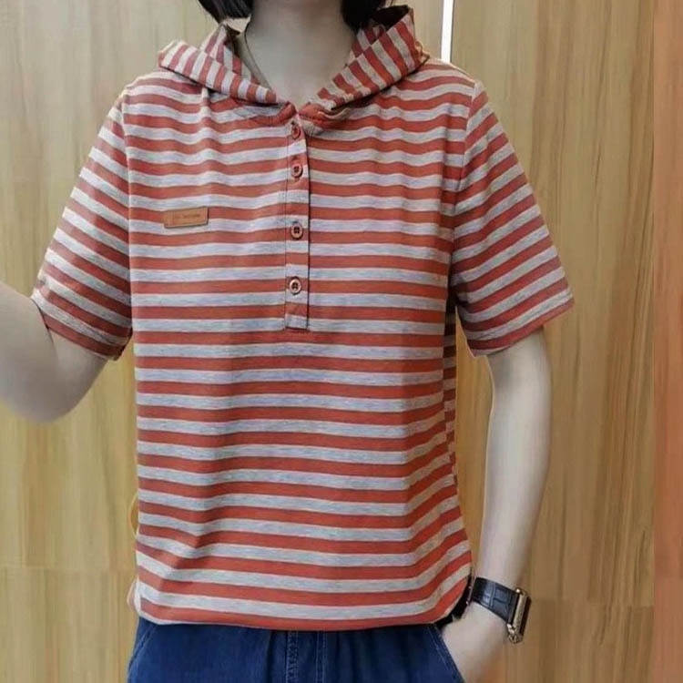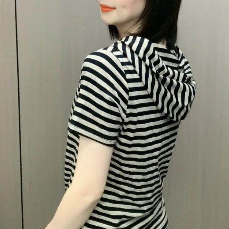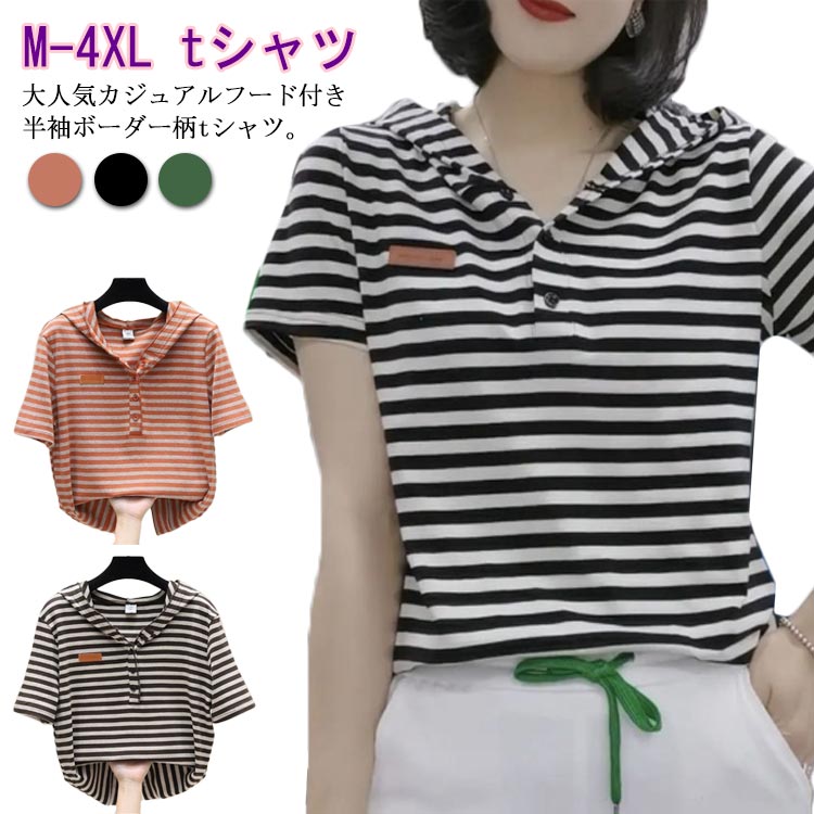 パーカー ゆったり カットソー トップス ボーダー柄 おしゃれ 半袖tシャツ レディース フード付き フード付きtシャツ