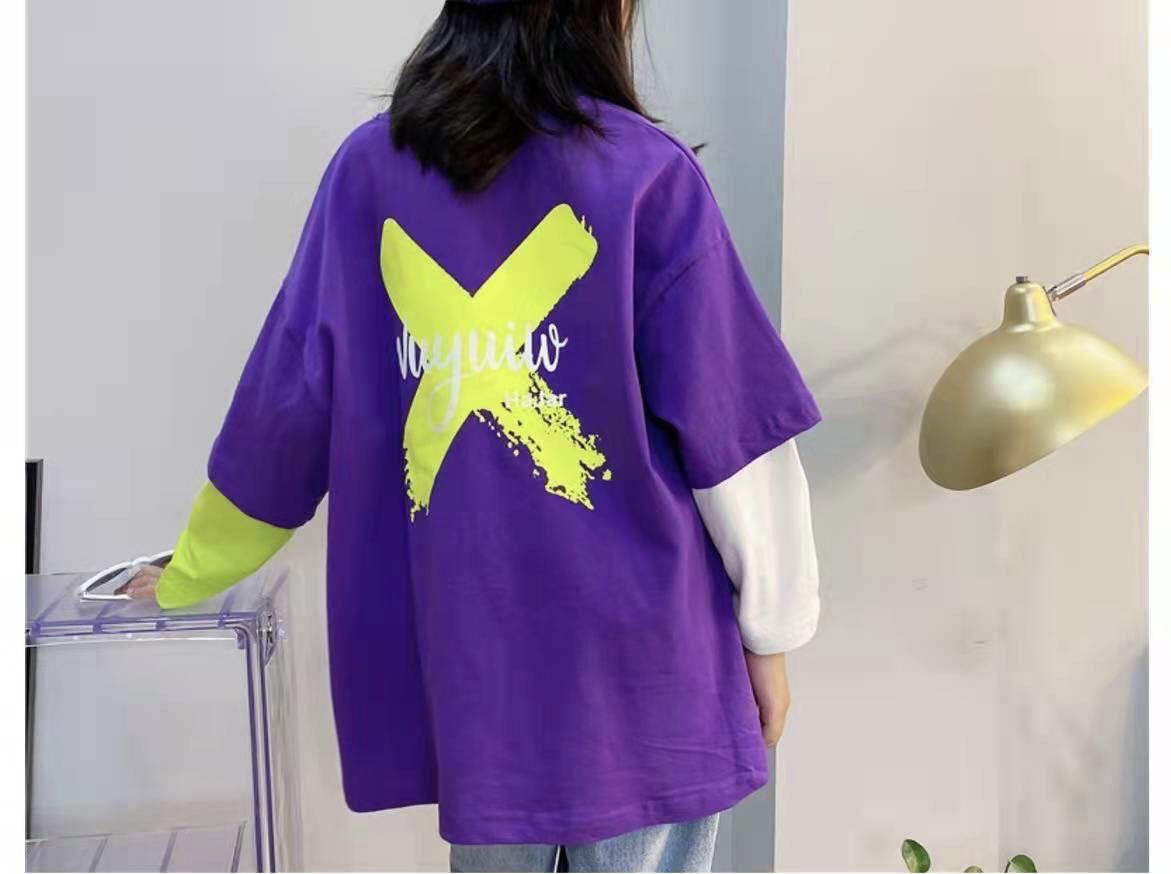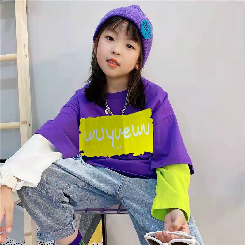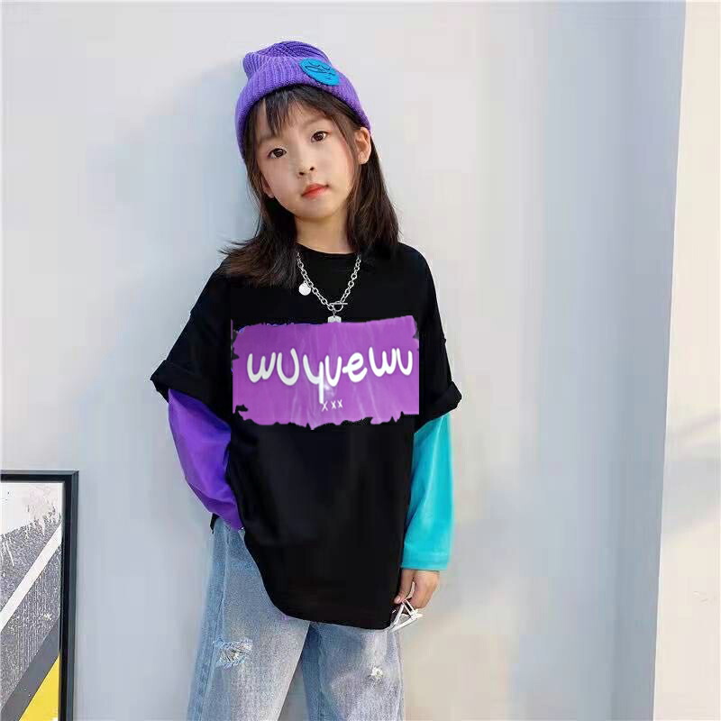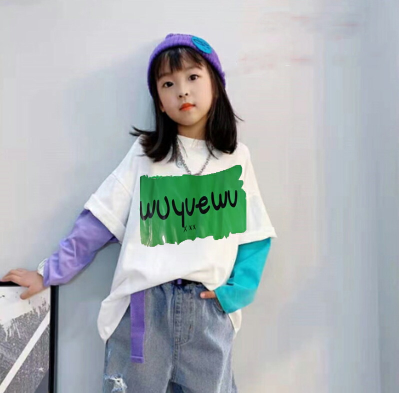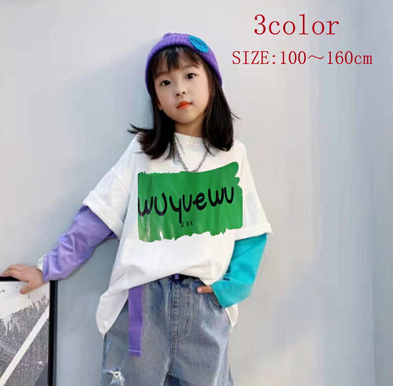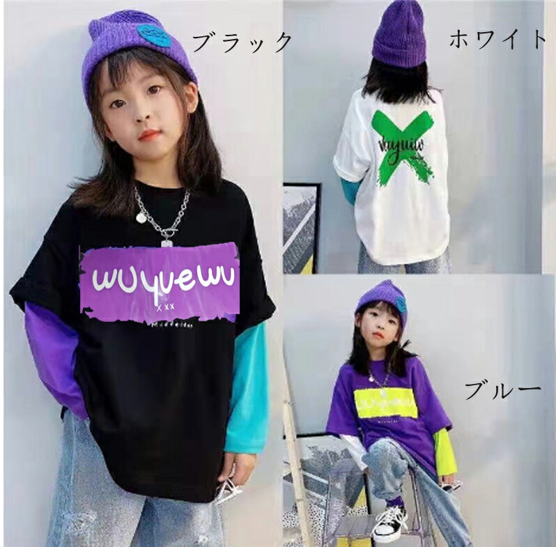 ロングt キッズ トップス 子供tシャツ プリントtシャツ ストリートファッション ストリートダンス ダンス練習着 ダンスレッスン こども服 子ども服 ドッキング風 重ね着風 長袖 女 ロングtシャツ
