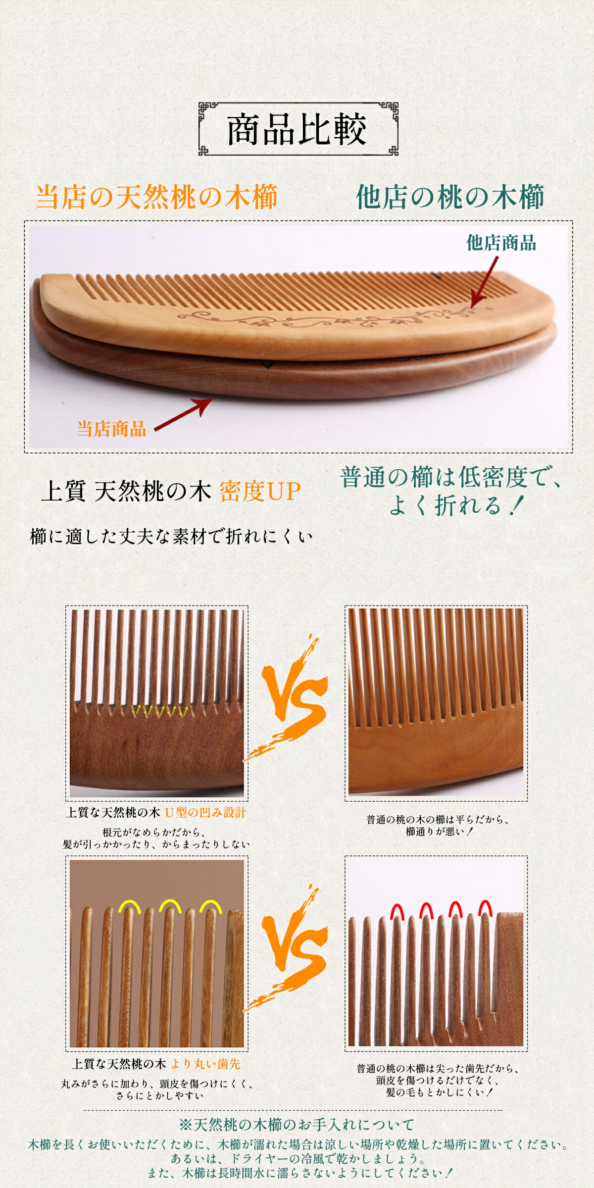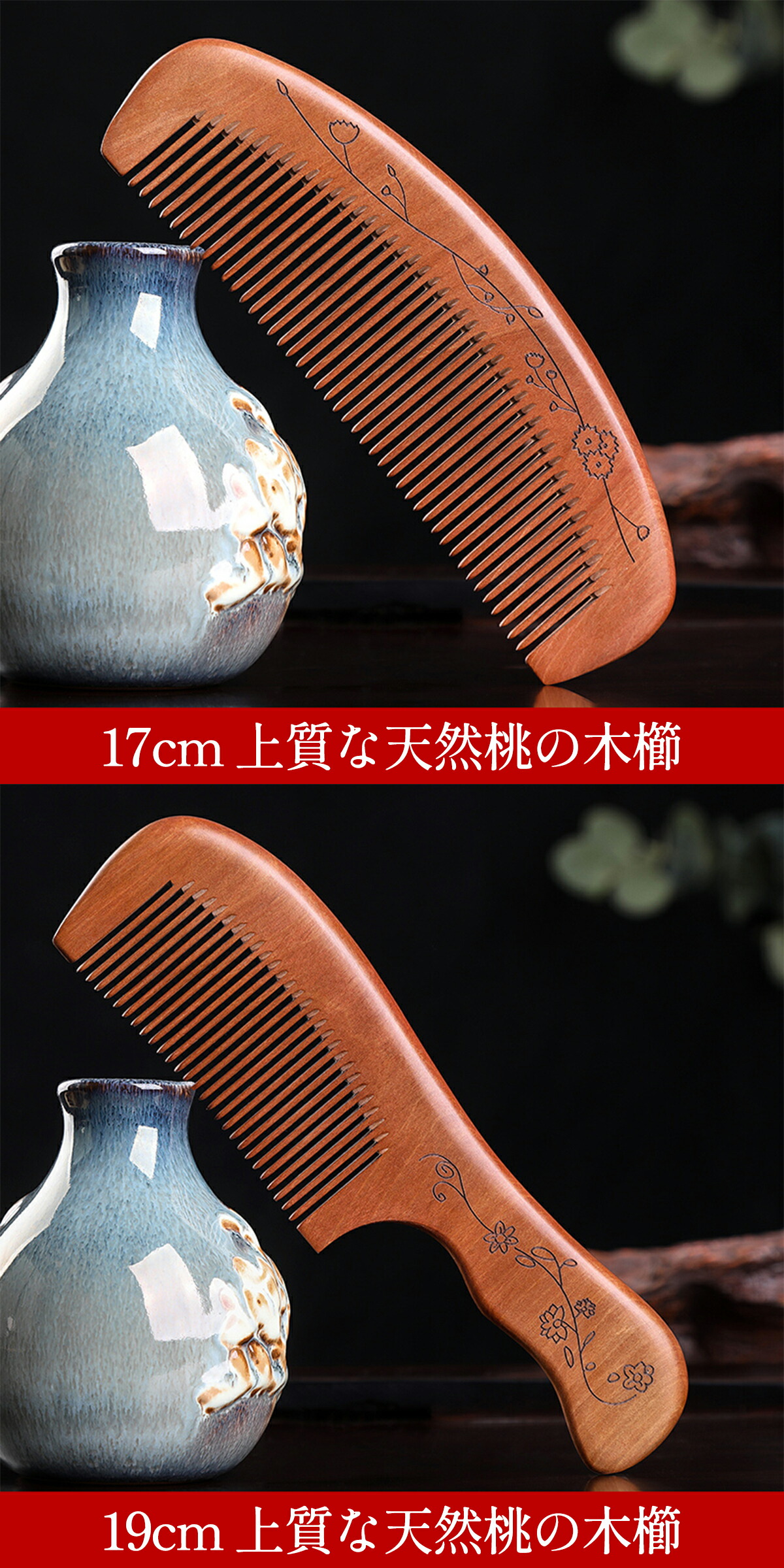 メンズ レディース天然 木製 桃木髪 天然桃の木櫛 17cm 天然桃の木櫛 19cm