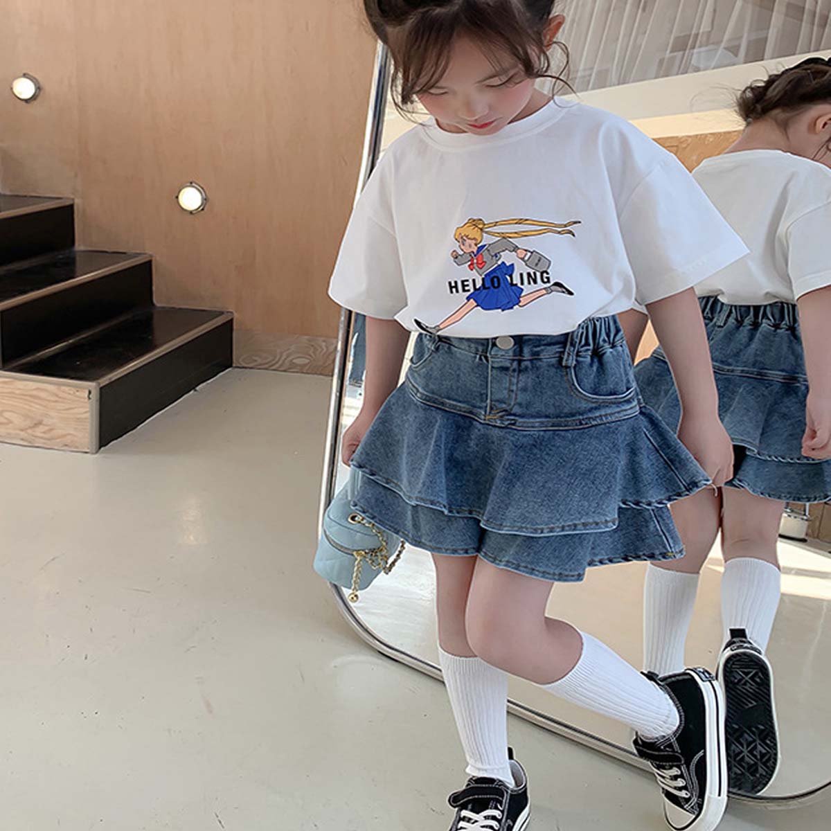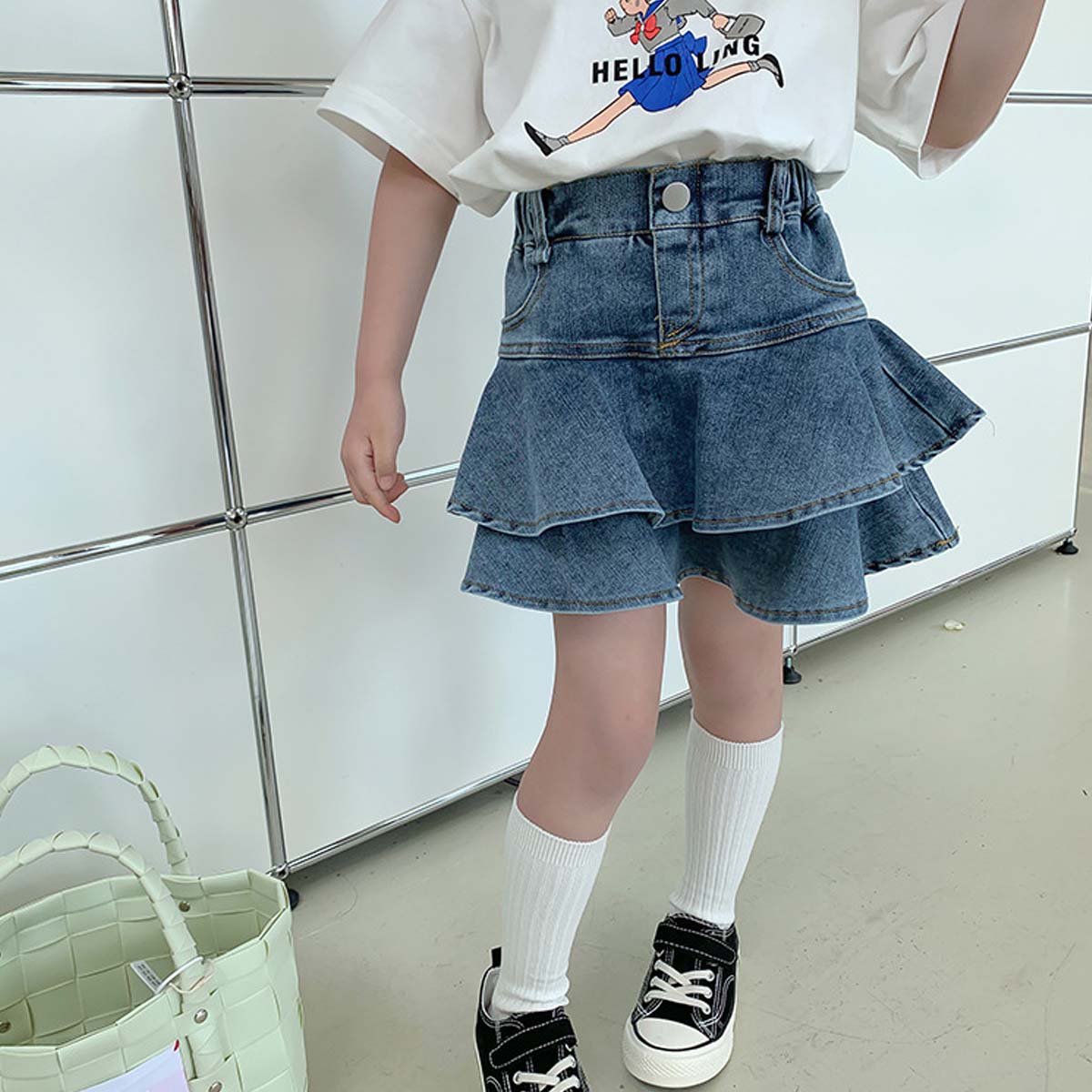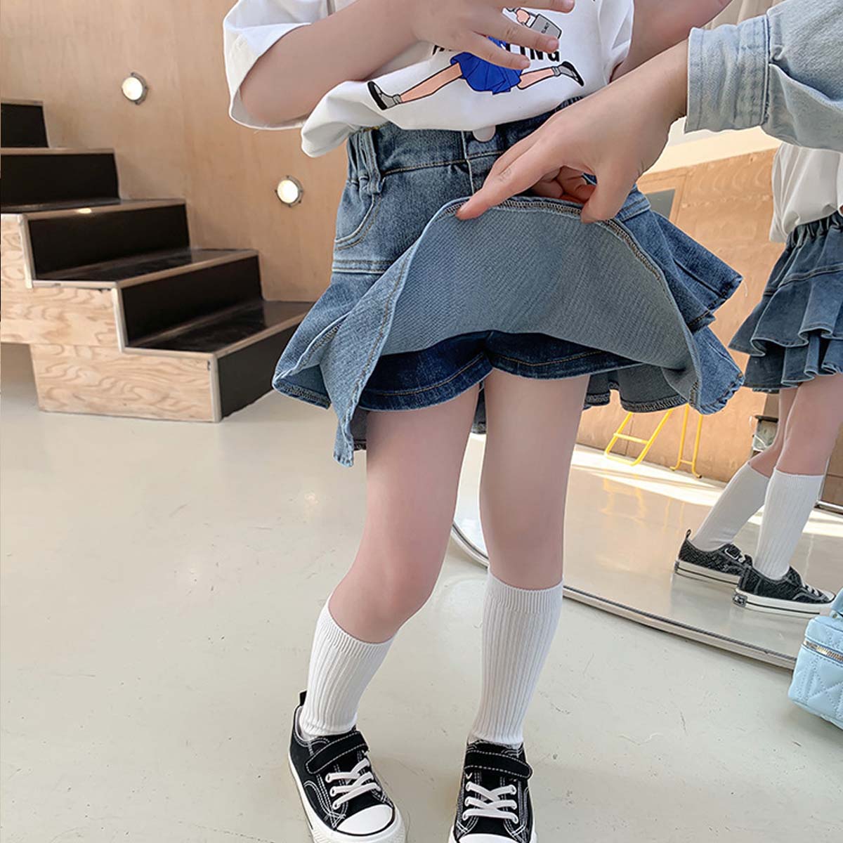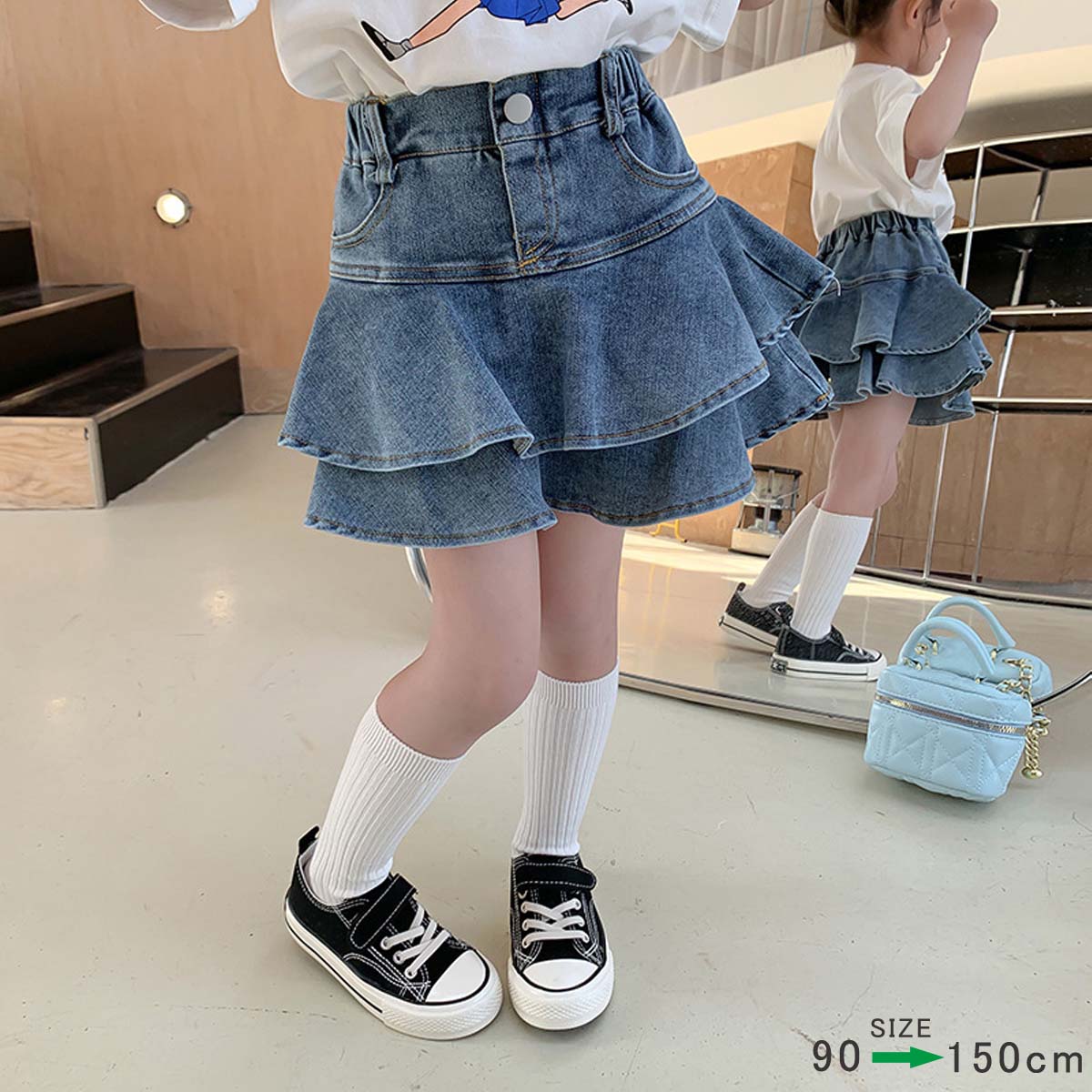 ティアード デニムスカッツ キュロット ショートパンツ キッズ服 子供服 ジュニア こども キッズ ガールズ 女の子 女児 90 100 110 120 130 140 150 春 夏 通園 通学 プチプラ ペアマノン