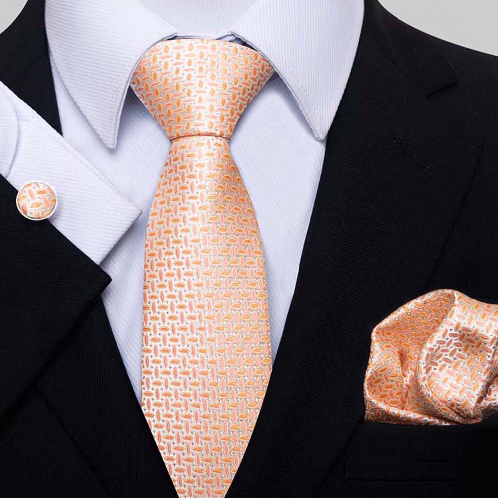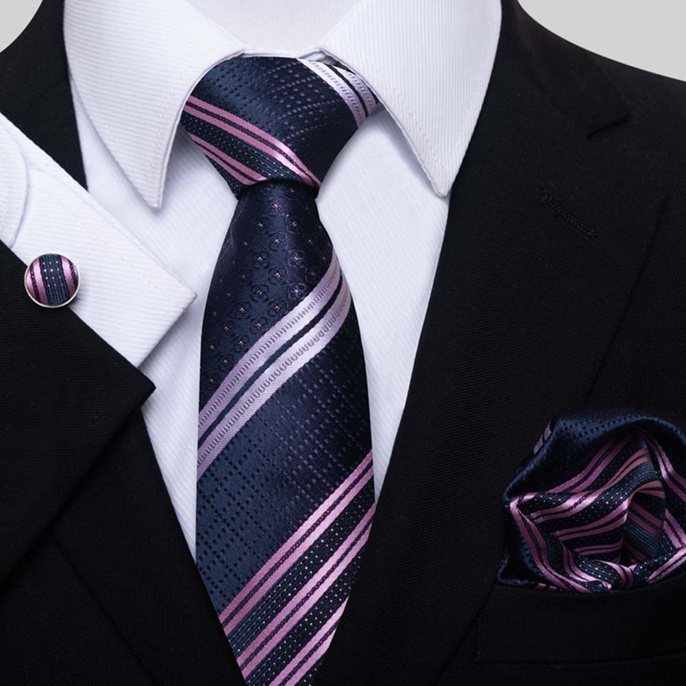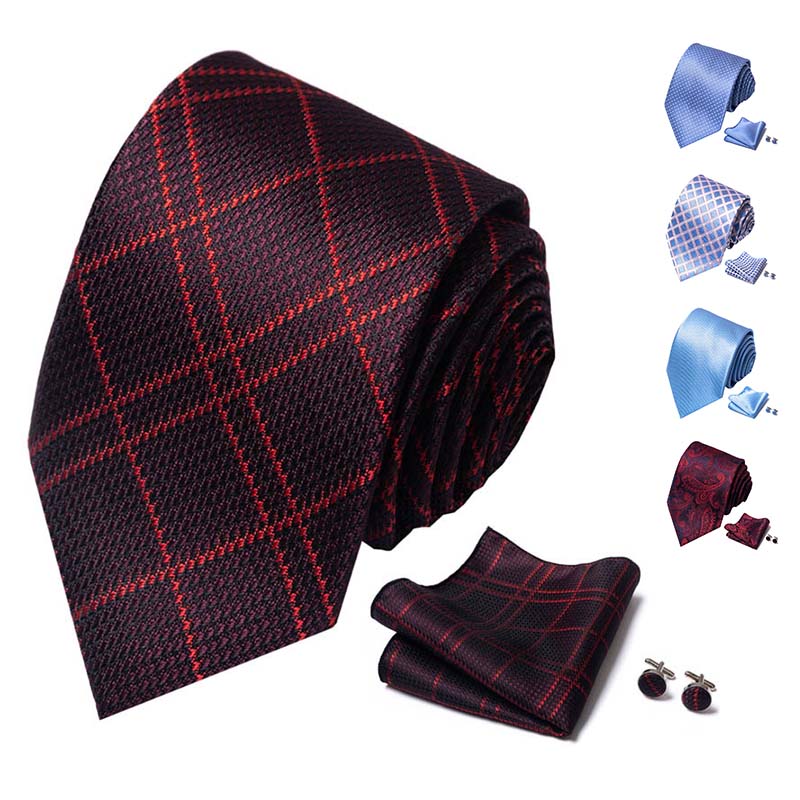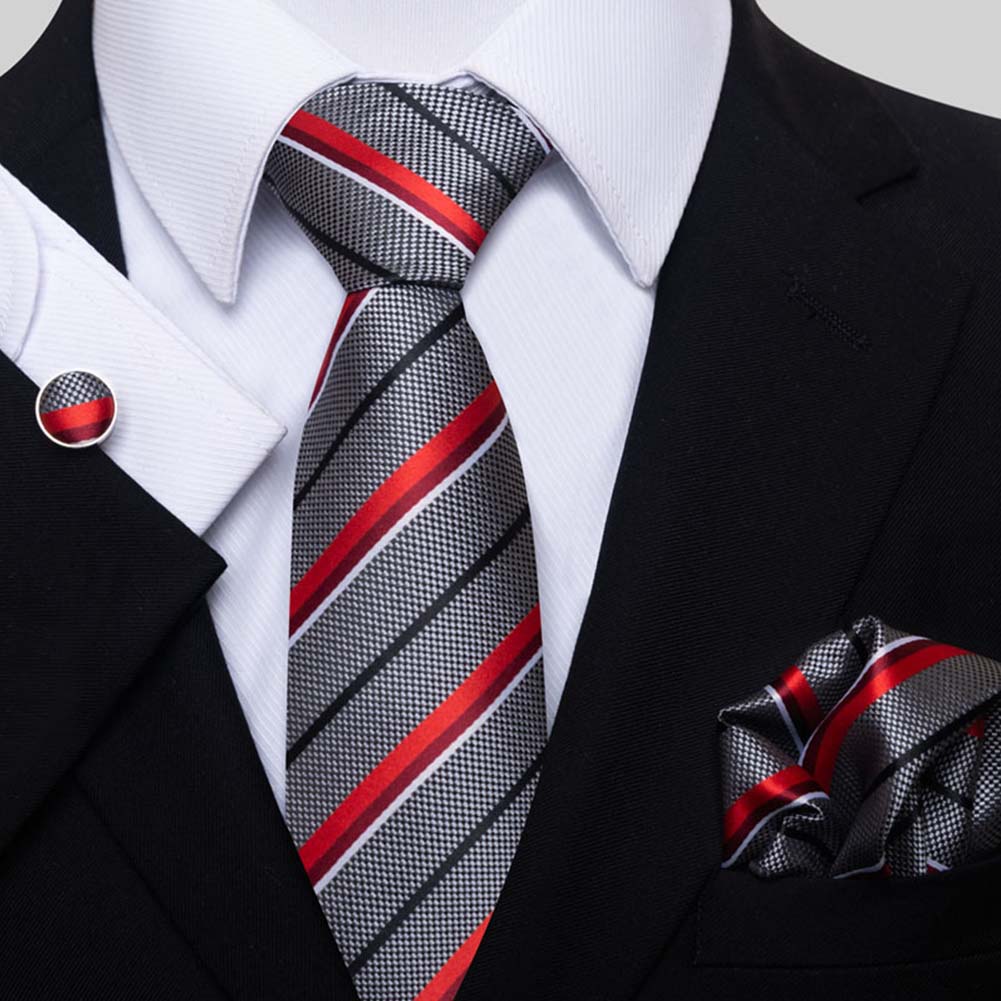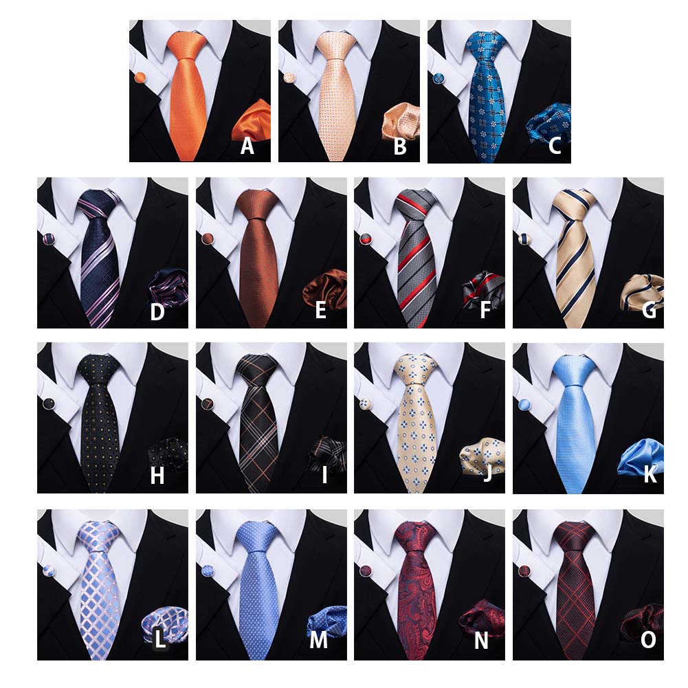 セット内容:ネクタイ(長さ148cm*大剣先幅8cm)、ポケットチーフ(25*25cm)、カフスボタン2つ(1.5*1.5cm)