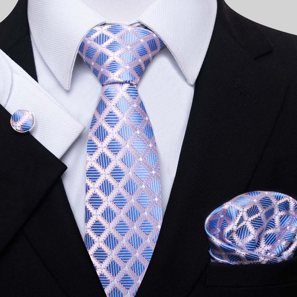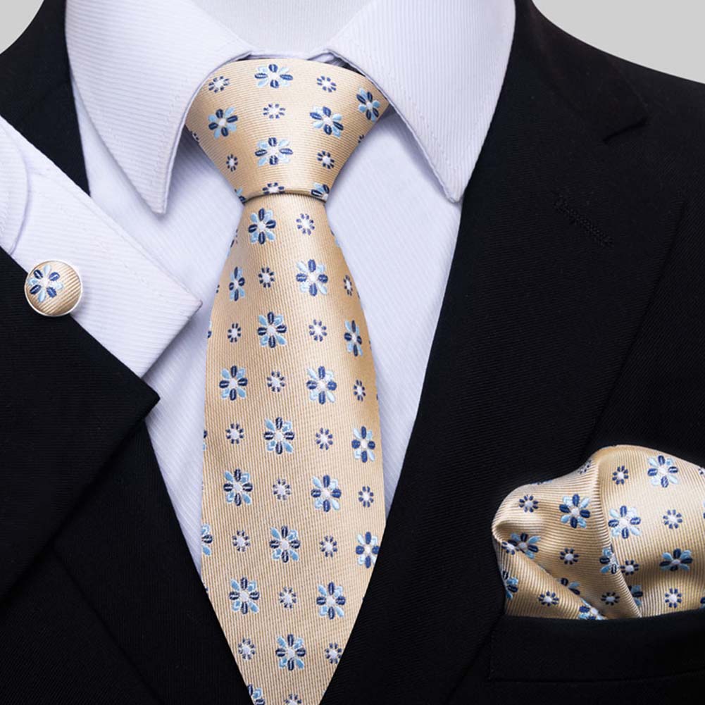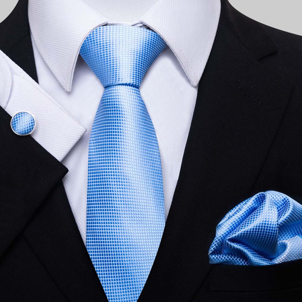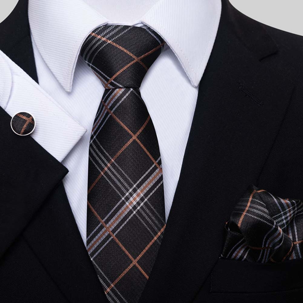 セット内容:ネクタイ(長さ148cm*大剣先幅8cm)、ポケットチーフ(25*25cm)、カフスボタン2つ(1.5*1.5cm)