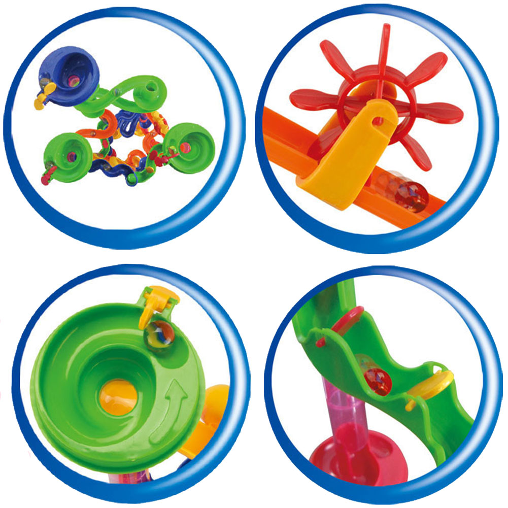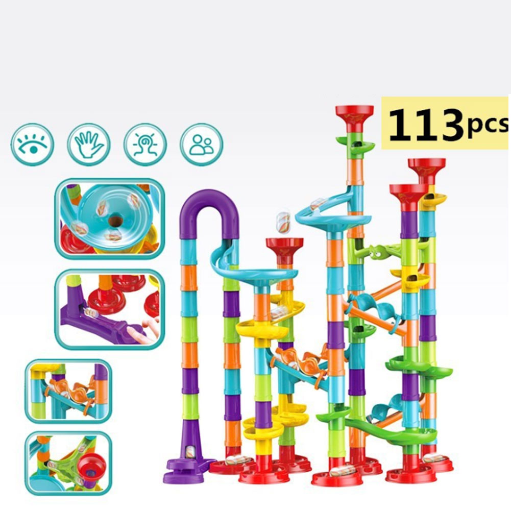 おもちゃ玩具ビーズコースタースロープ 組み立て ブロック DIY 立体 パズル 女の子 誕生日のプレゼント ビー玉転がし113ピース 男の子