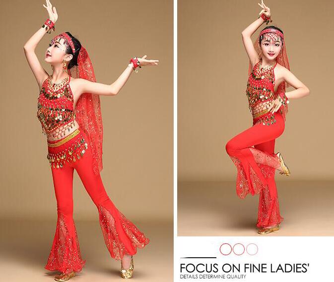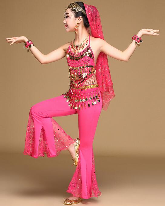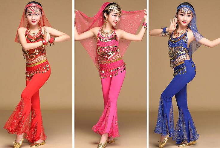 スパンコール キッズ 子供ベリーダンス衣装女の子舞台ベリーダンスウェア仮装ベルボトムパンツ ラジンジャスミン風ベリーダンス