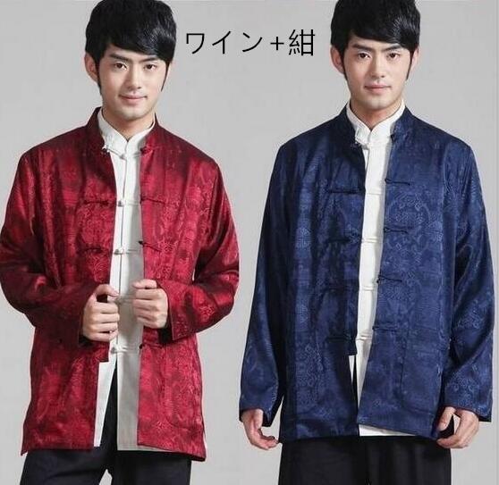 新入荷色 両面柄 表裏両面着用 リバーシブル メンズ カジュアル シャツ カンフー 唐装漢服 長袖 KUNGFU 中華 チャイナシャツカーディガン春夏秋 太極拳服