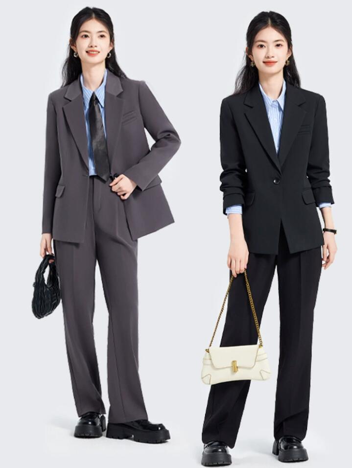 パンツスーツセットレディーススーツジャ レディースファッション 特集 グレージャケットだけ 黒ジャケットだけ グレーコート+パンツ 黒コート+パンツ 灰色2点セット+青シャツ 黒2点セット+青シャツ 黒2点セット+白シャツ S M L XL XXL 3XL