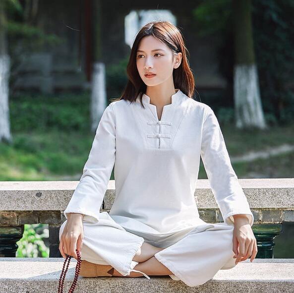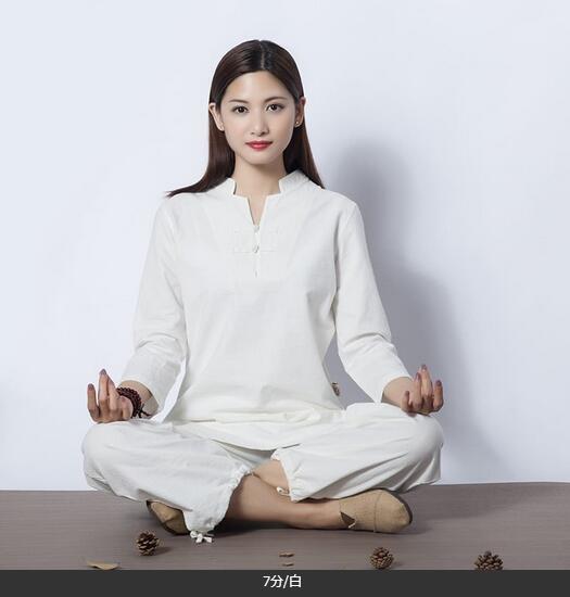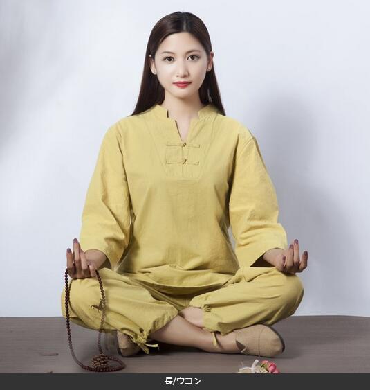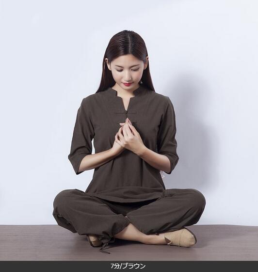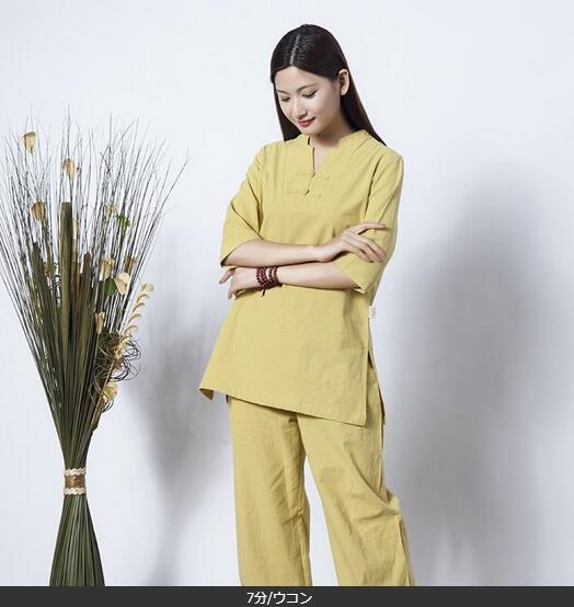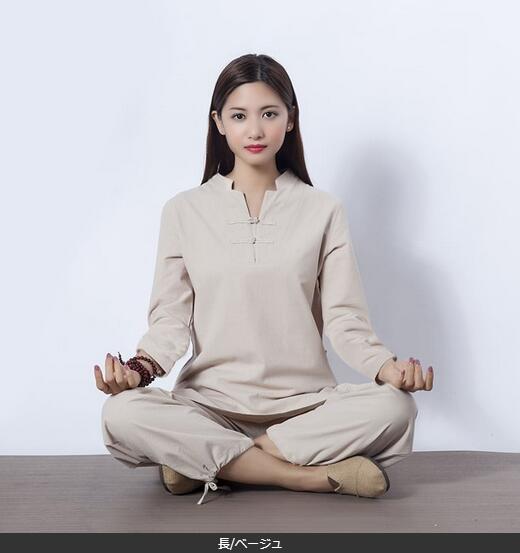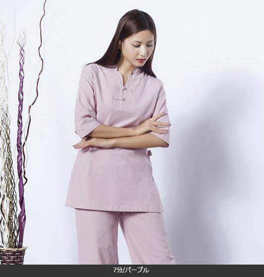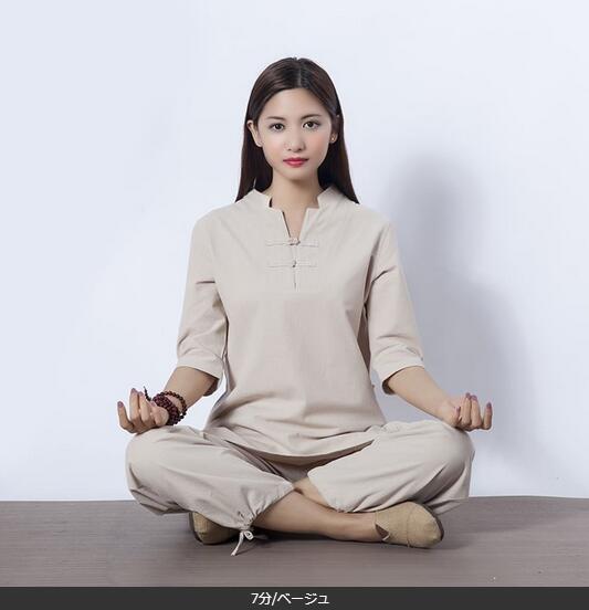 5色7分袖 長袖レディース太極拳服 綿麻上下セットアップチャイナ風ジョッキング女性用 表演服 カンフー綿麻 ルームウェアヨガ練習着春秋夏 練習服