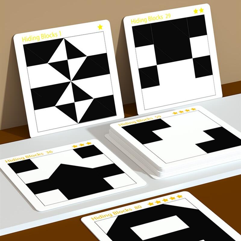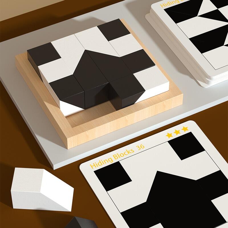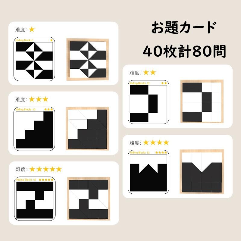ブロックパズル おもちゃ 知育玩具 脳トレ 積み木を隠す 観察力 思考力 パズル テーブルゲーム お題カード40枚計80問 3歳以上 大人 高齢者 プレゼント 子供