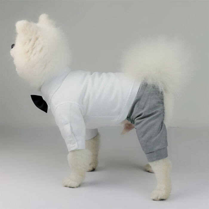 ペット スーツ ドッグ 犬 服 タキシード シャツ グレー 結婚式 フォーマル リングドッグ お祝い 男の子 プレゼント 記念日