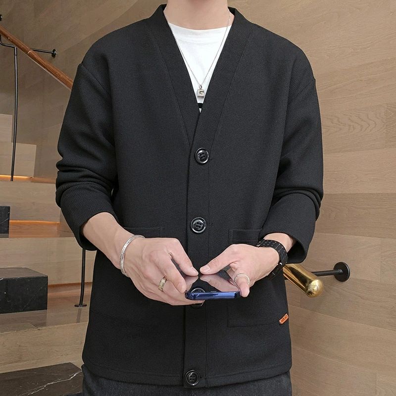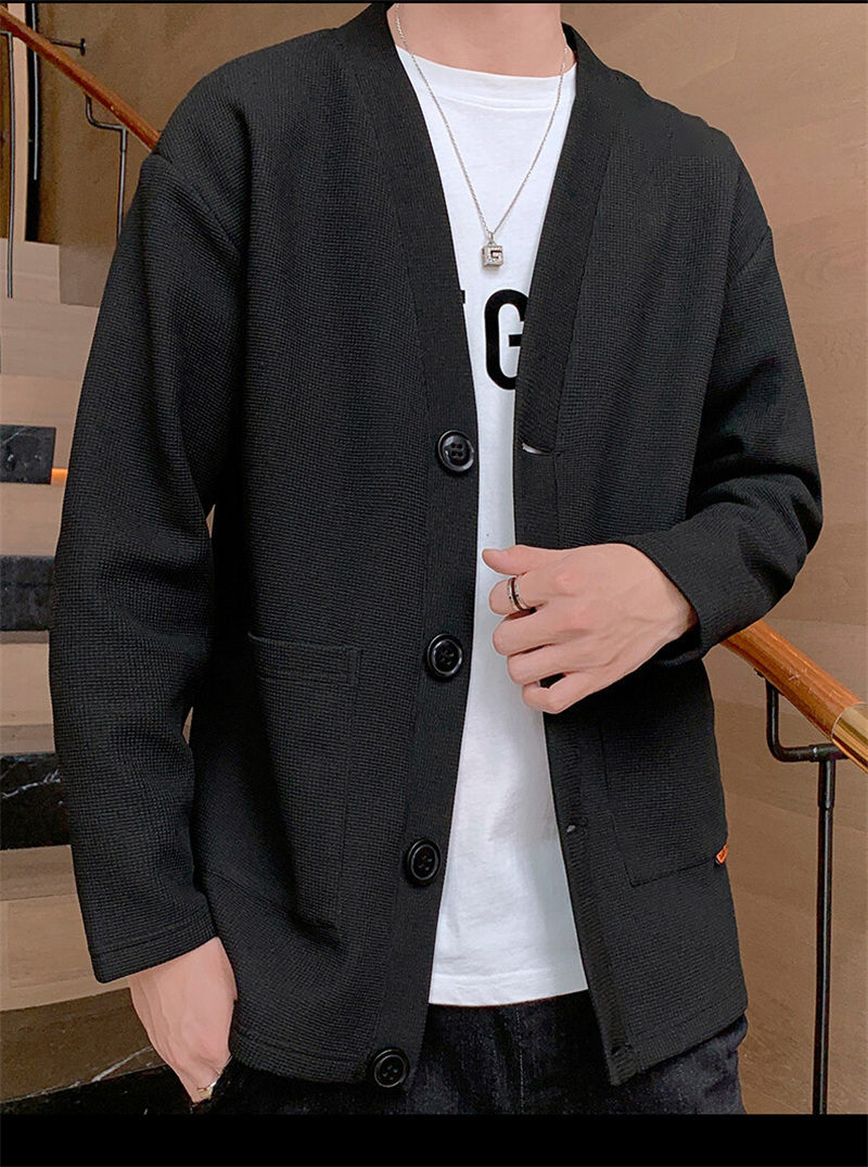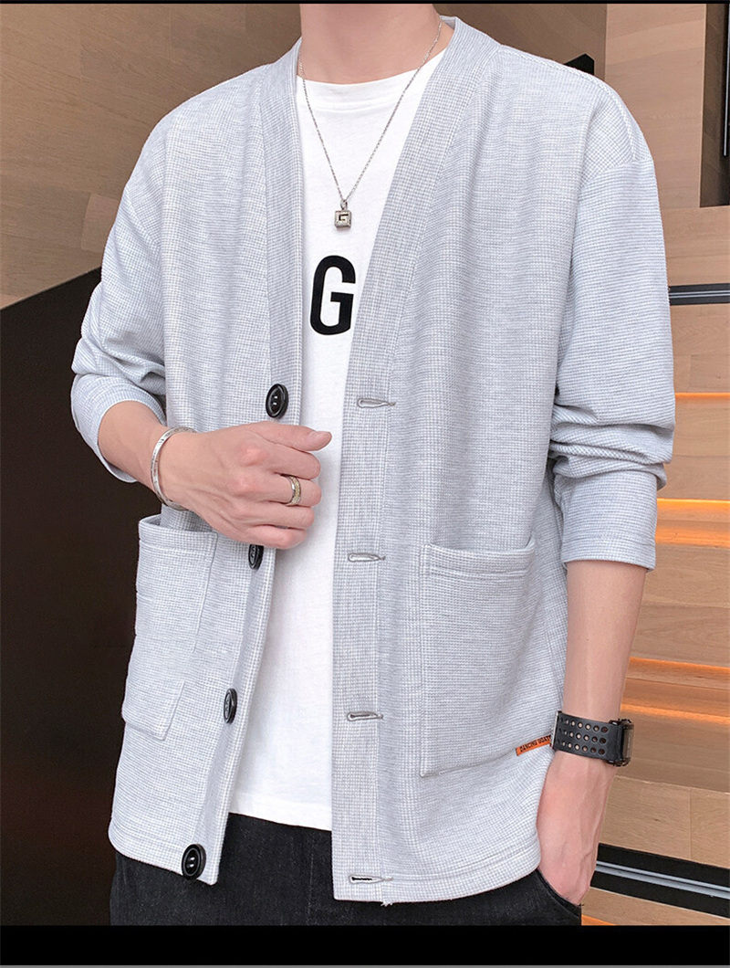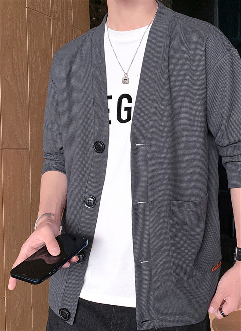 カーディガン メンズ スウェット 羽織り 前開き ジャケット パーカー アウター 長袖 トップス 薄手 秋物 夏物 春物 通勤 通学 カコイイ ワッフル トレンド ライトアウター カジュアル 着流し