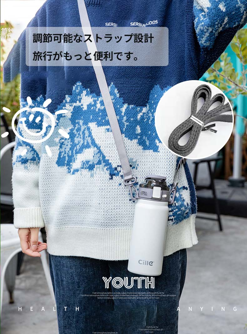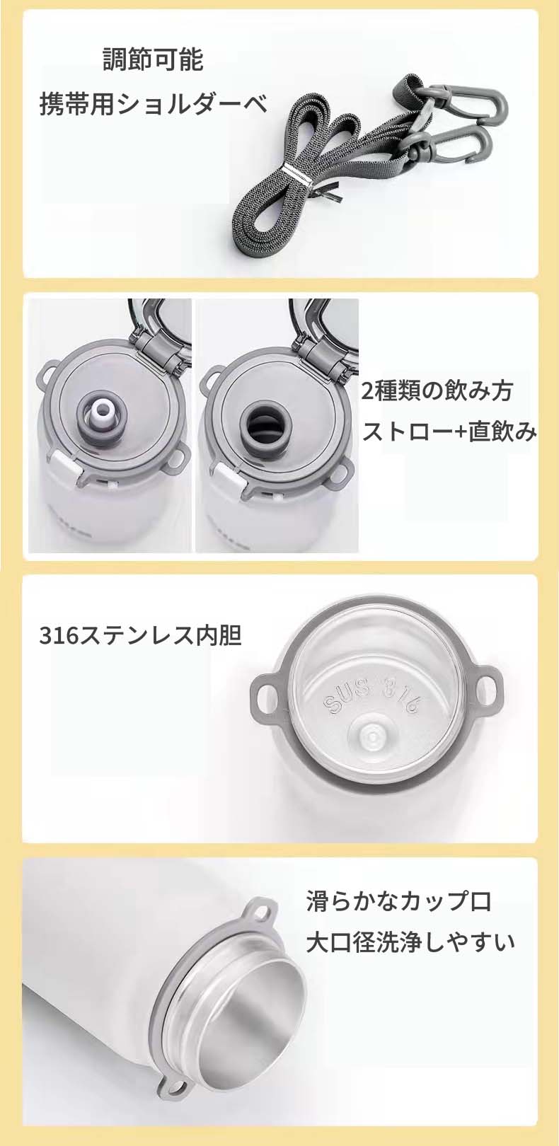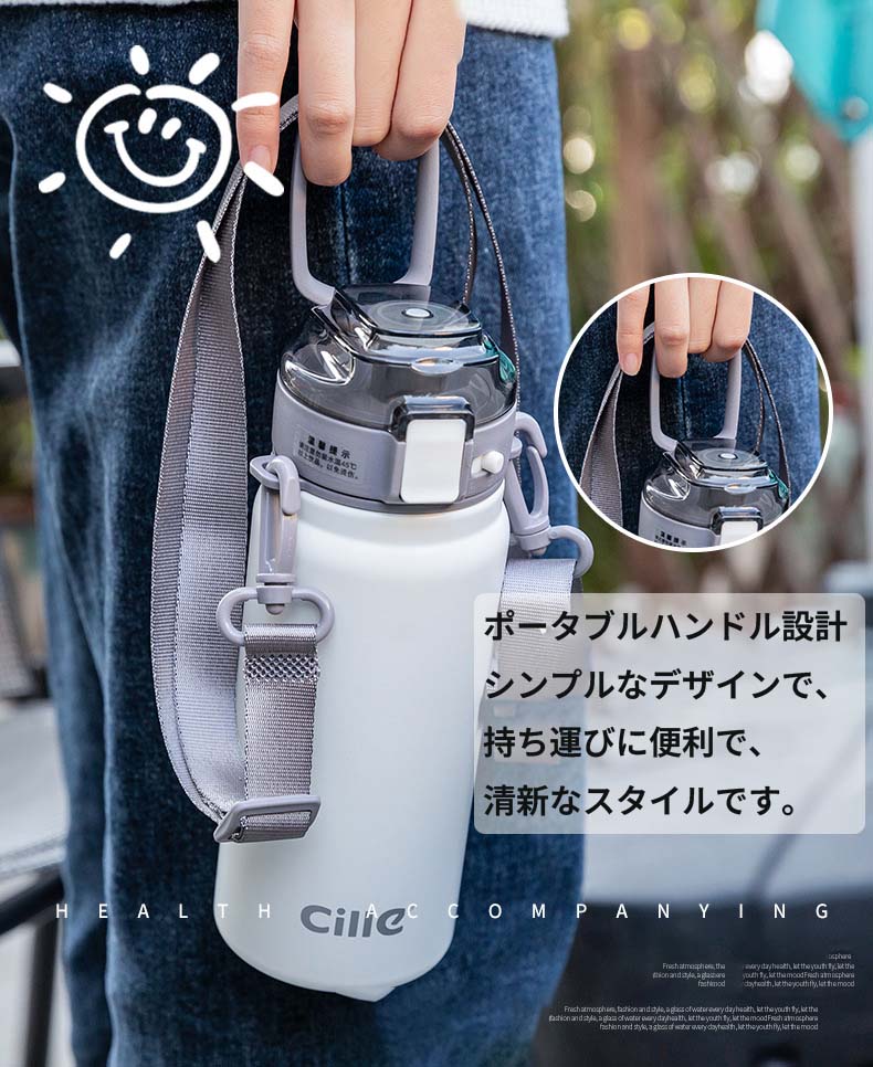 600ML 水筒 キッズ 子供用 直飲み ストロー おすすめ 小学生 男の子 女の子 中学生 316ステンレス ダイレクトボトル 大容量 750ML マグボトル 保温 ワンタッチ 紐 ストラッ 保冷