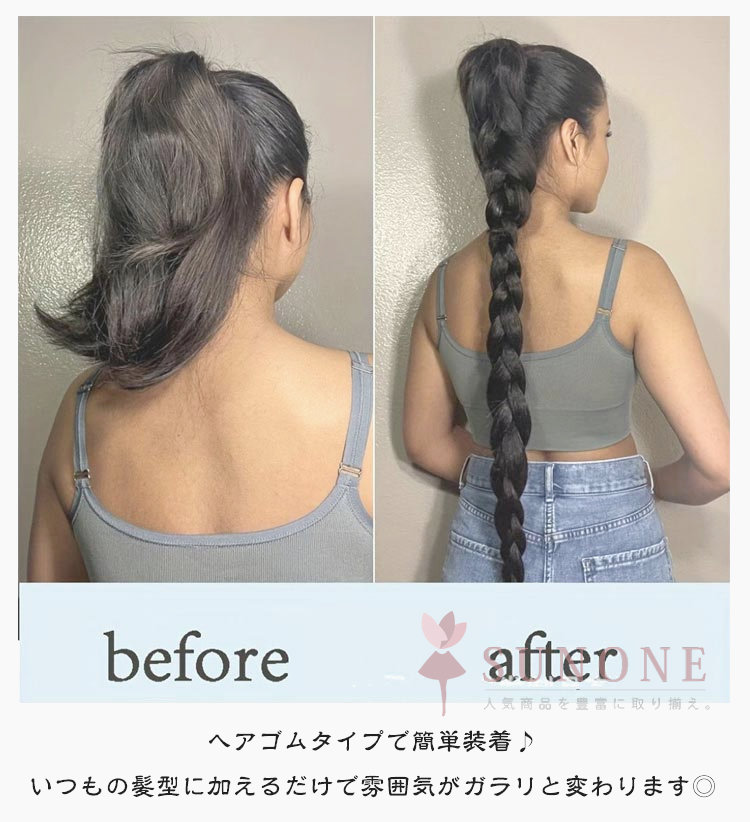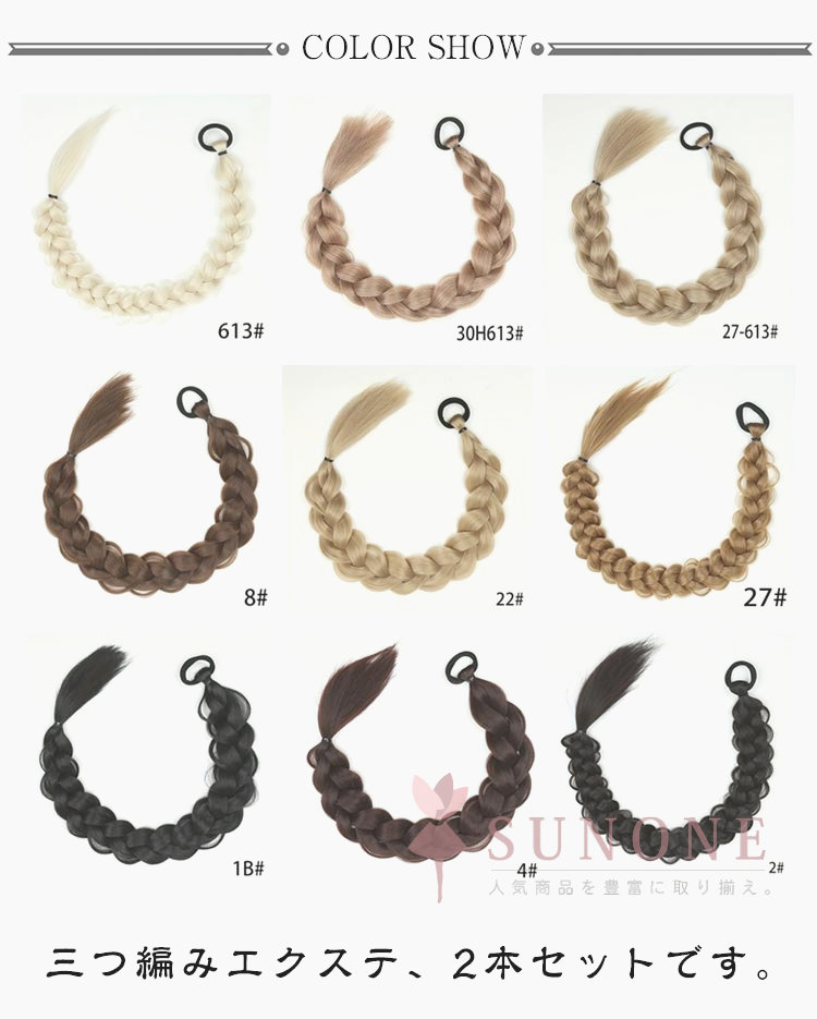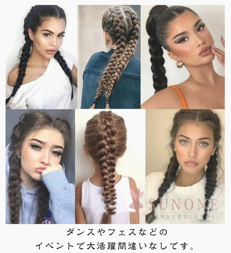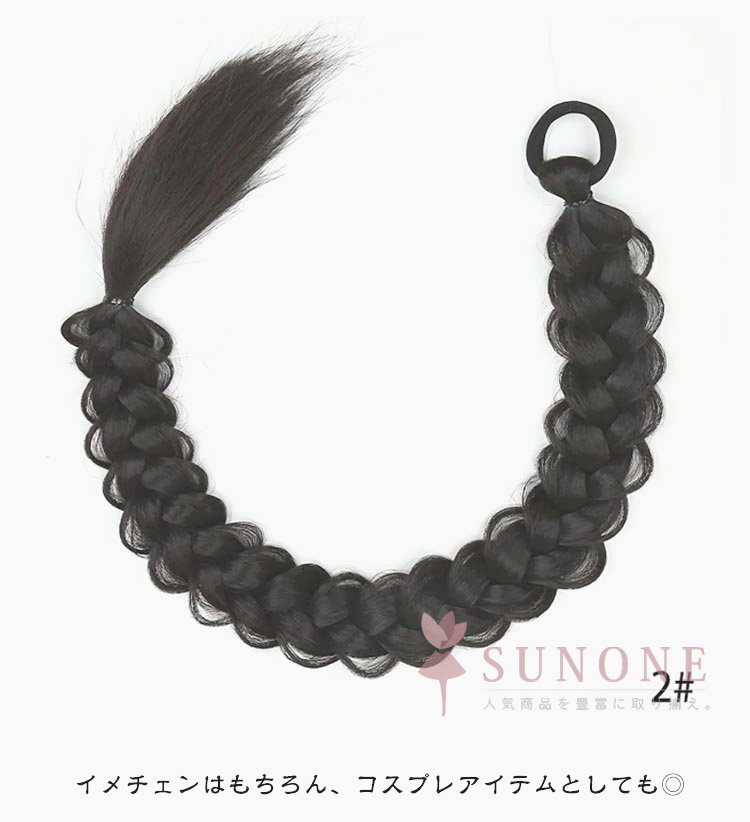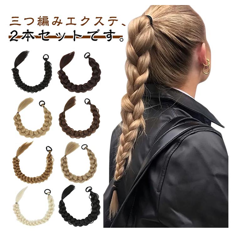ウィッグ 三つ編み 編み込み ブレイズ エクステ ヘアアレンジ 2本セット ヘアゴム 装着簡単 可愛い おしゃれ イメチェン レディース