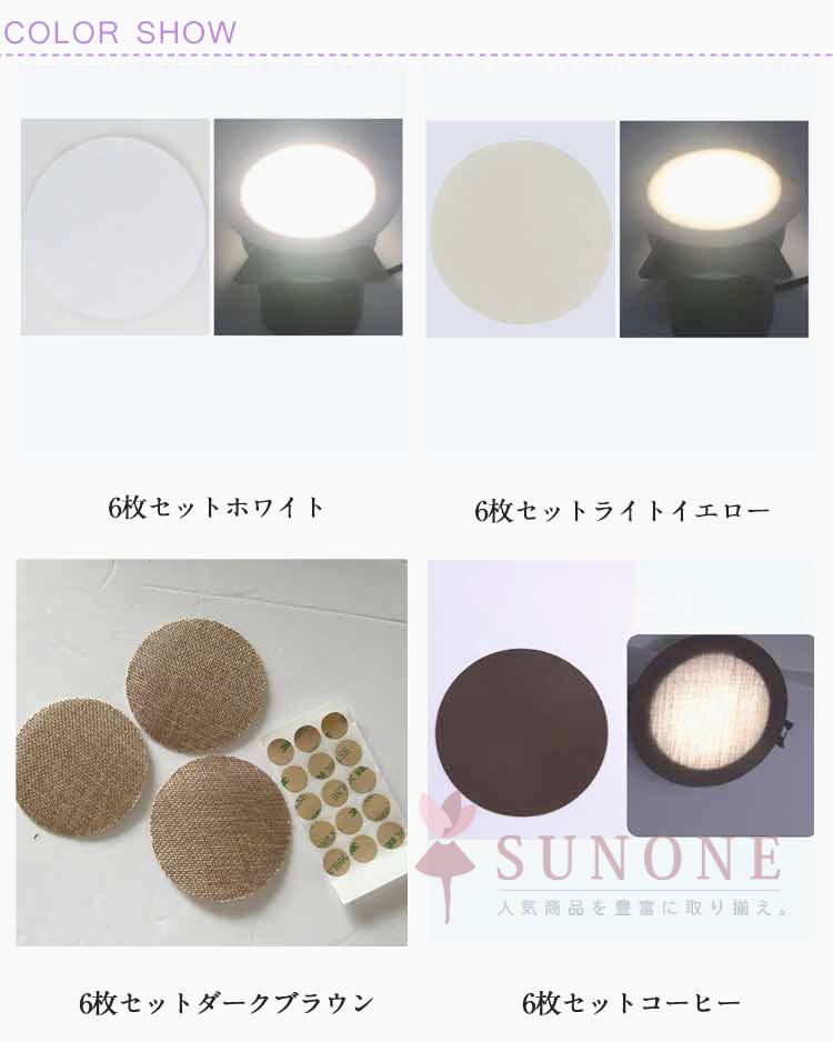 ダウンライト 拡散カバー 減光フィルム 6枚セットホワイト 6枚セットライトイエロー 6枚セットダークブラウン 6枚セットコーヒー 直径5cm 直径6cm 直径7cm 直径8cm 直径9cm 直径10cm 直径12cm 直径14cm 直径16cm 直径18cm