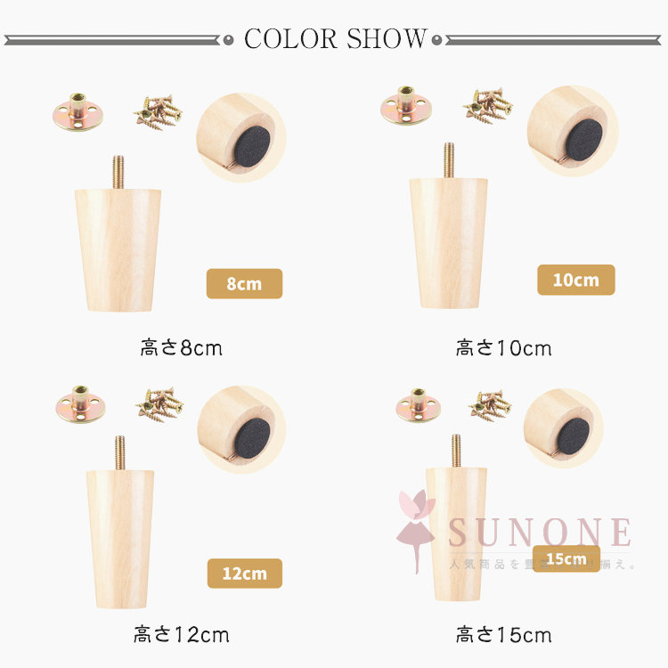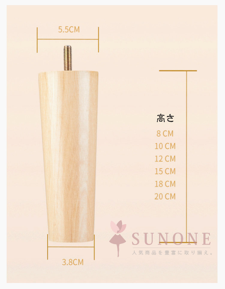 木製脚 家具脚 継ぎ足 4本セット ソ 高さ8cm 高さ10cm 高さ12cm 高さ15cm 高さ18cm 高さ20cm