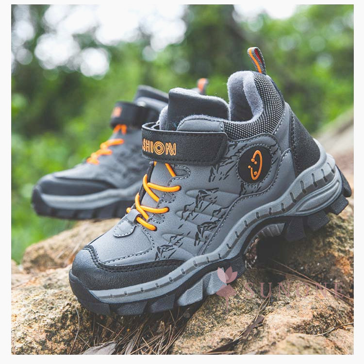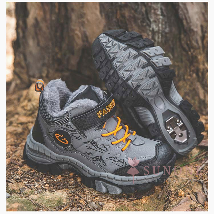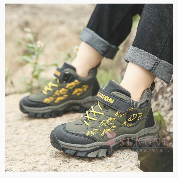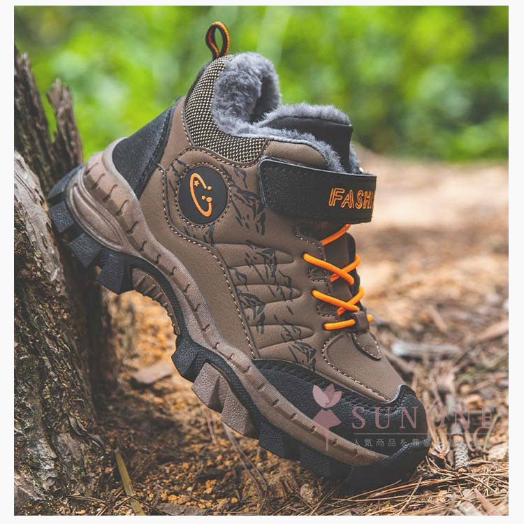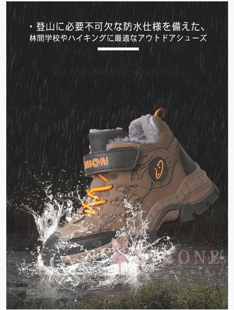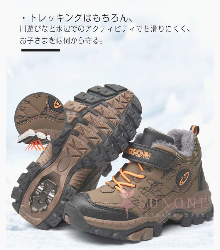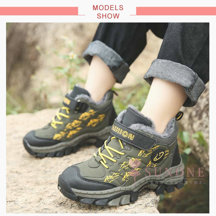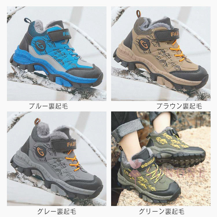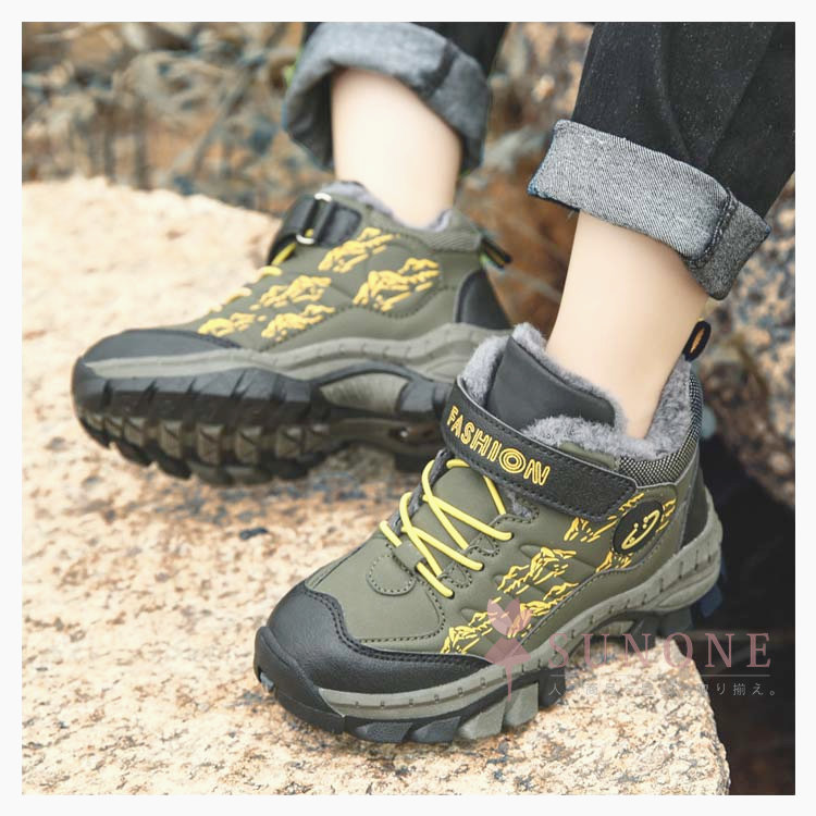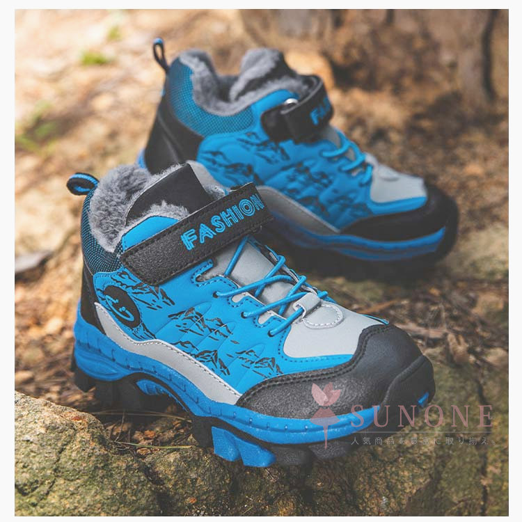 キッズトレッキングシューズ 子供用登山靴 防水防寒 裏起毛タイプ ハイカット 通学通園 春秋冬 衝撃吸収